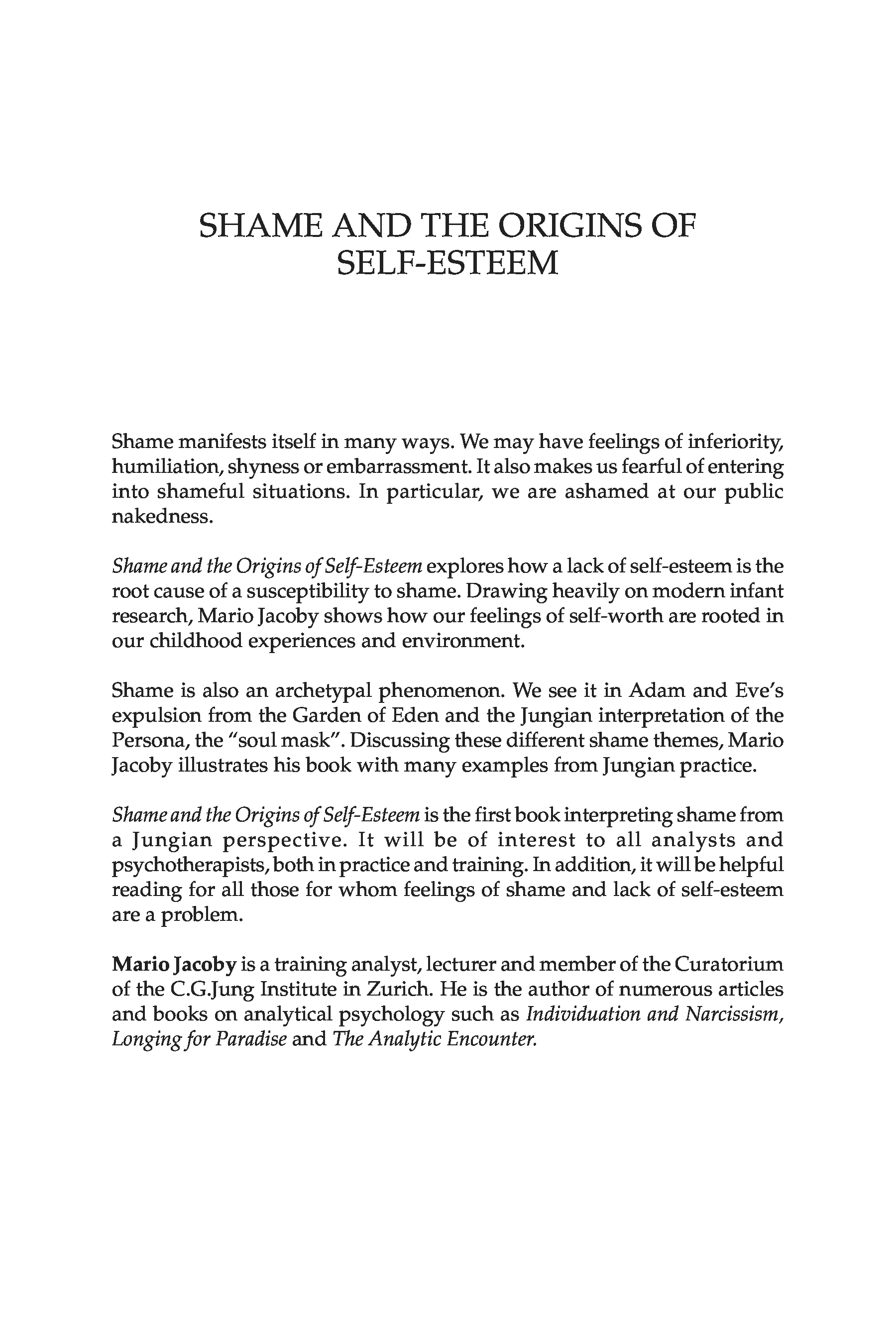 "Shame and the Origins of Self-Esteem: A Jungian Approach" - читать интересную книгу автора