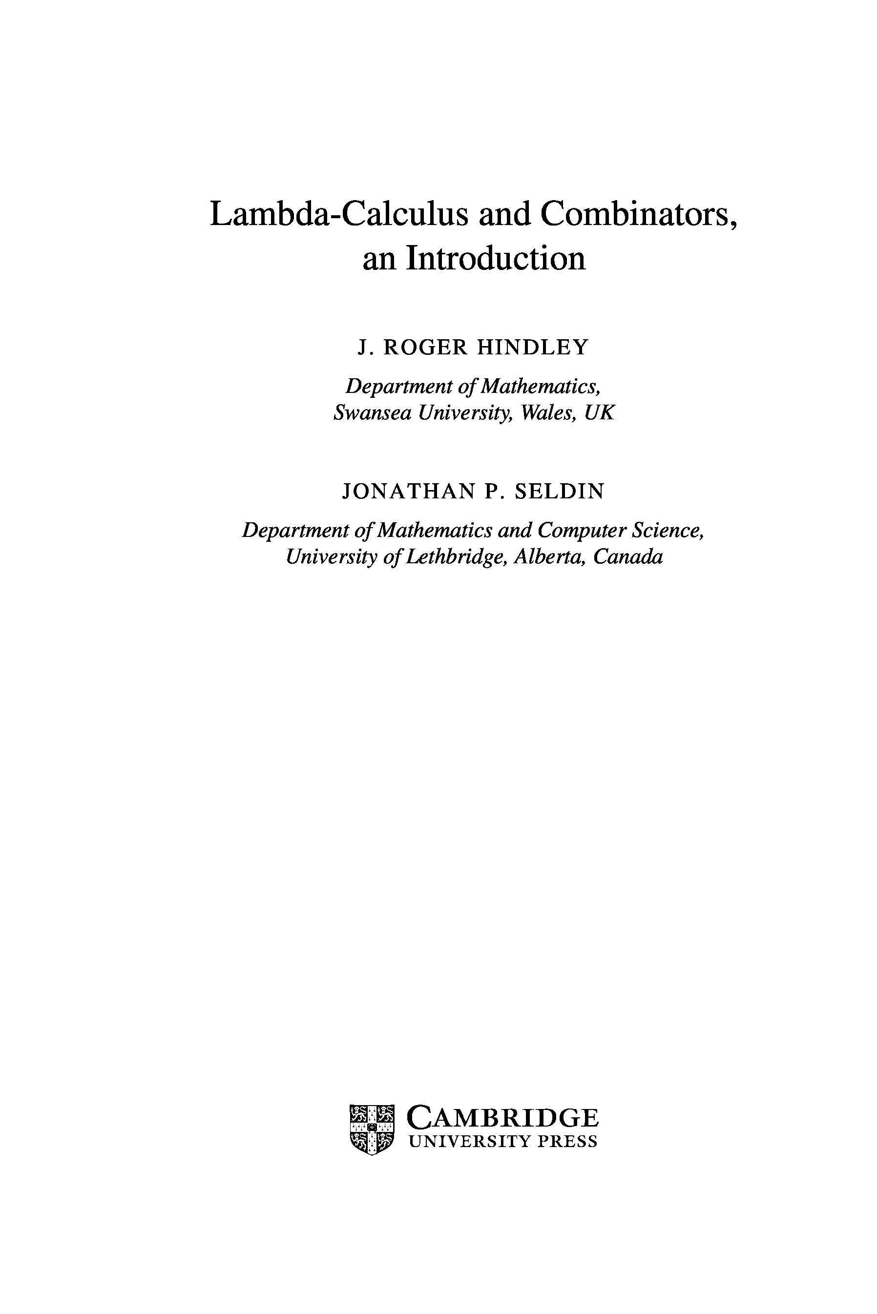 (J. Roger Hindley, Jonathan P. Seldin)