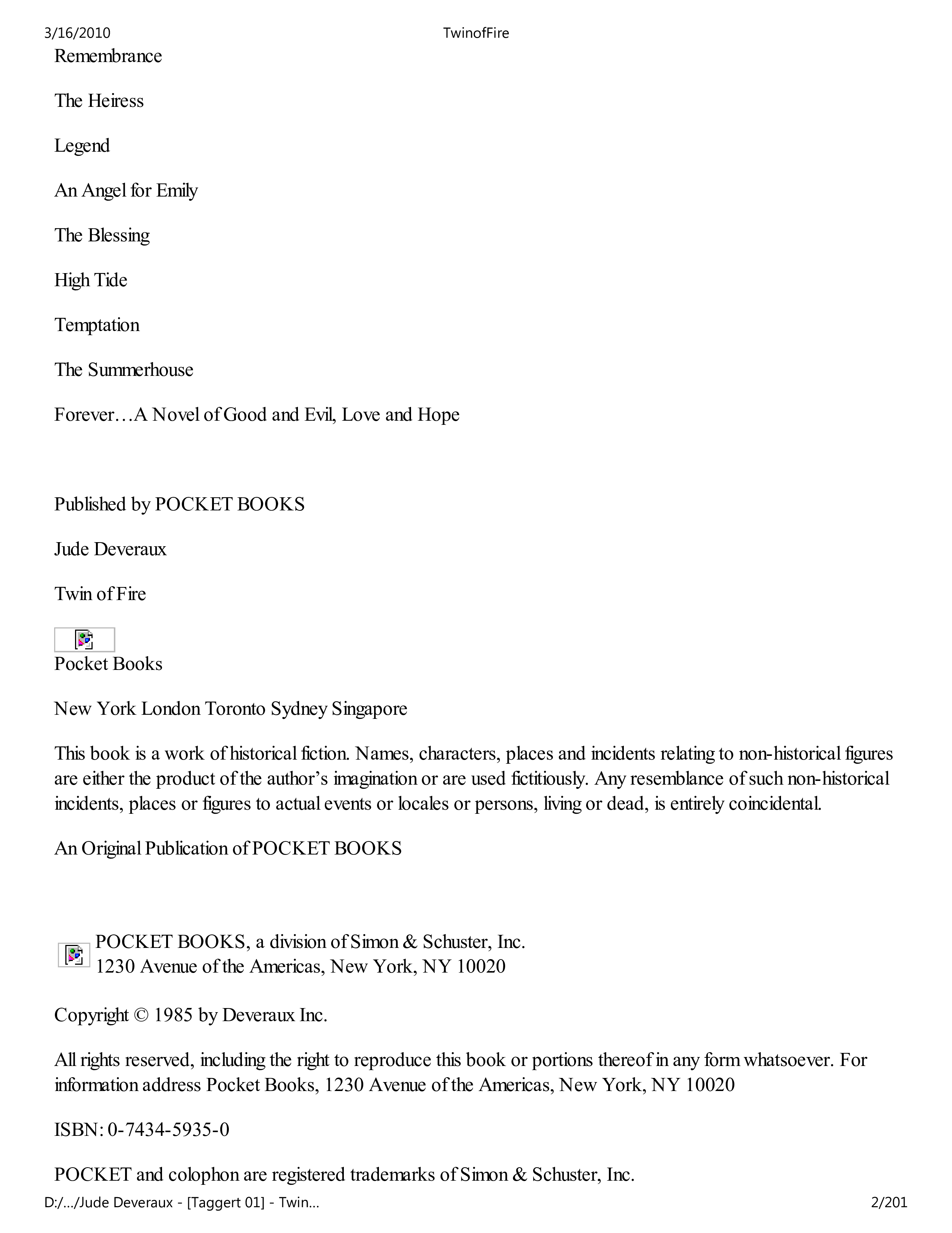 "Twin Of Fire" - читать интересную книгу автора (Jude Deveraux)