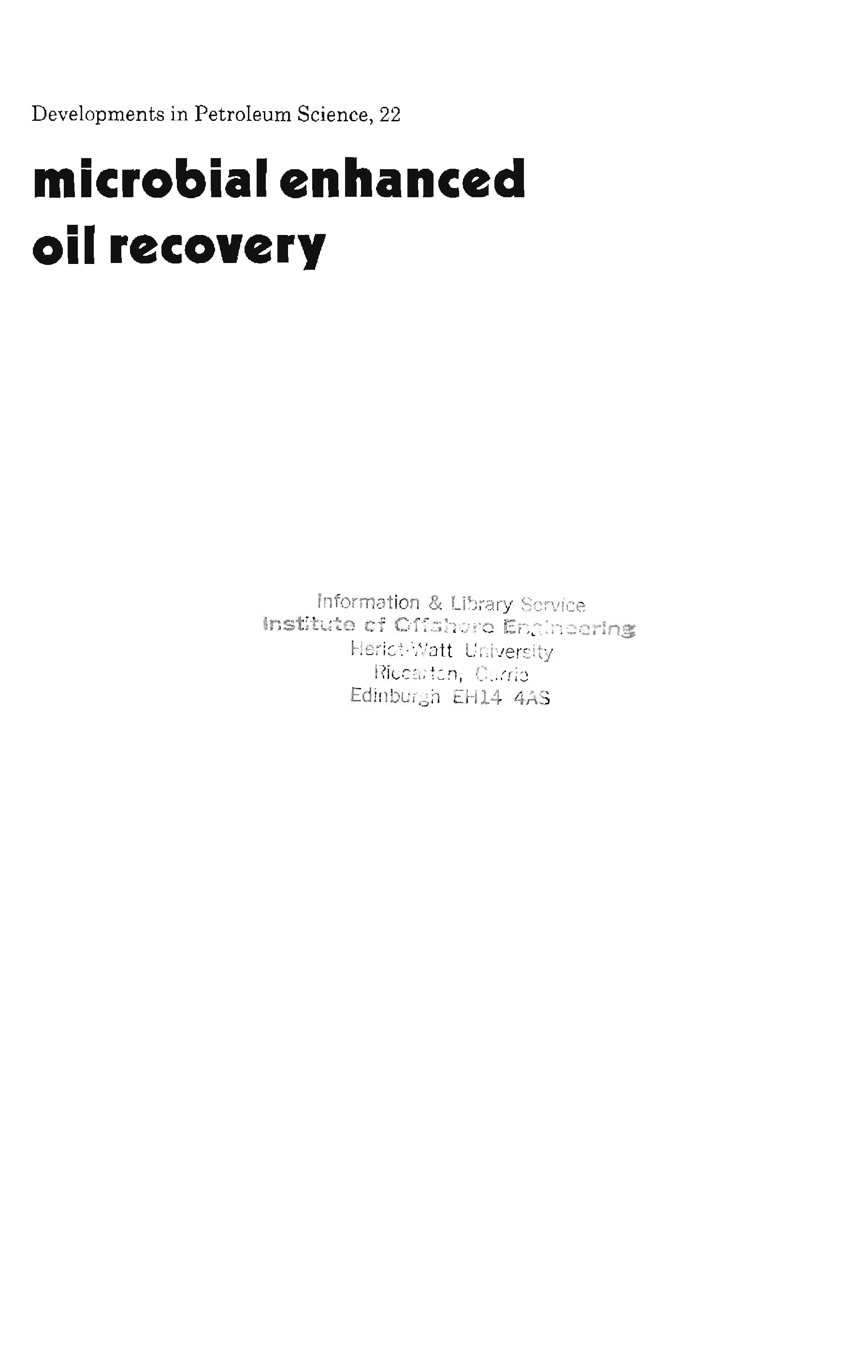 "Microbial Enhanced Oil Recovery (Developments in Petroleum Science, No. 22)" - читать интересную книгу автора