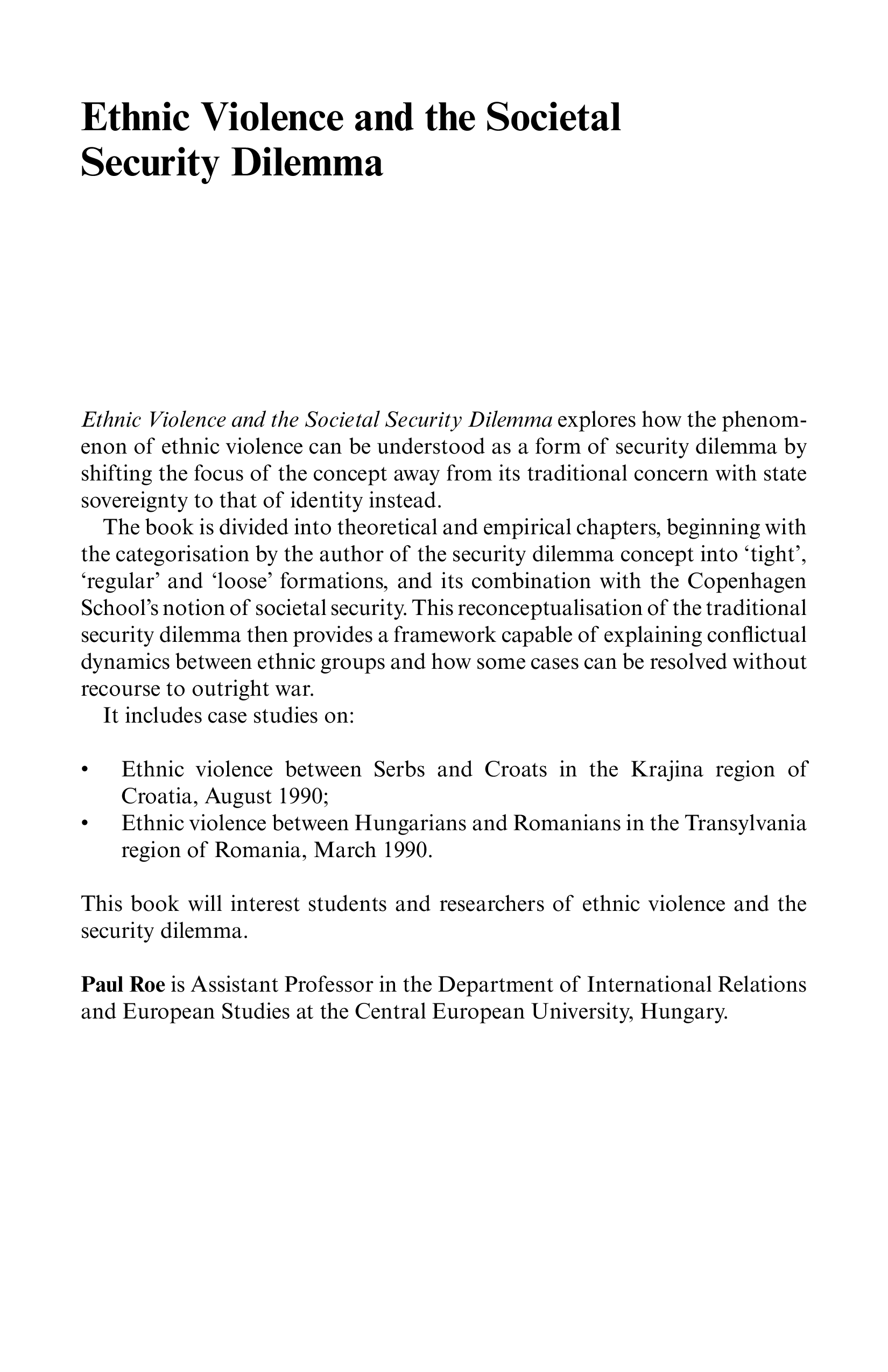 "Ethnic Violence and the Societal Security Dilemma (Routledge Series in Nationalism and Ethnicity)" - читать интересную книгу автора