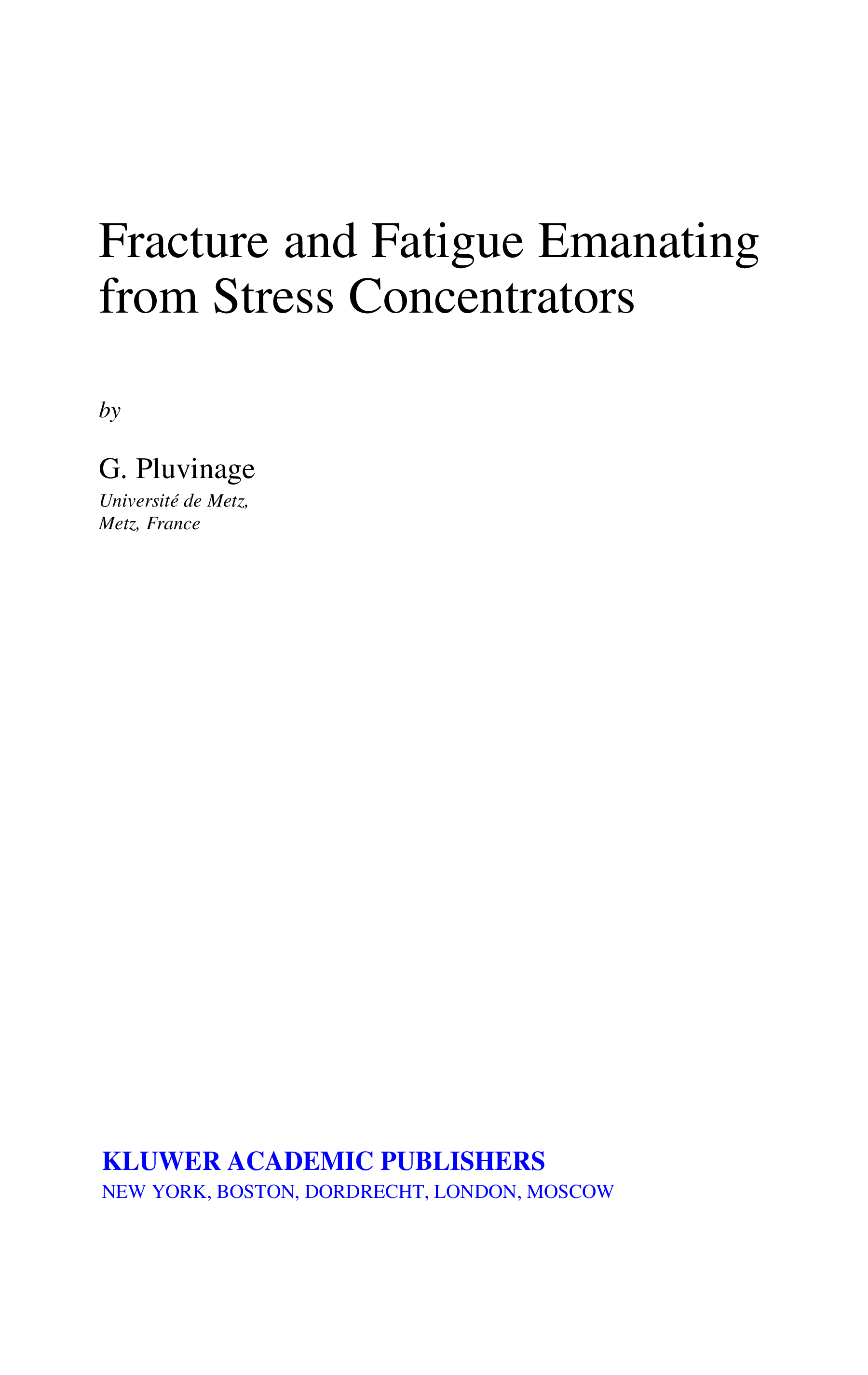 "Fracture and Fatigue Emanating from Stress Concentrators" - читать интересную книгу автора (G. Pluvinage)