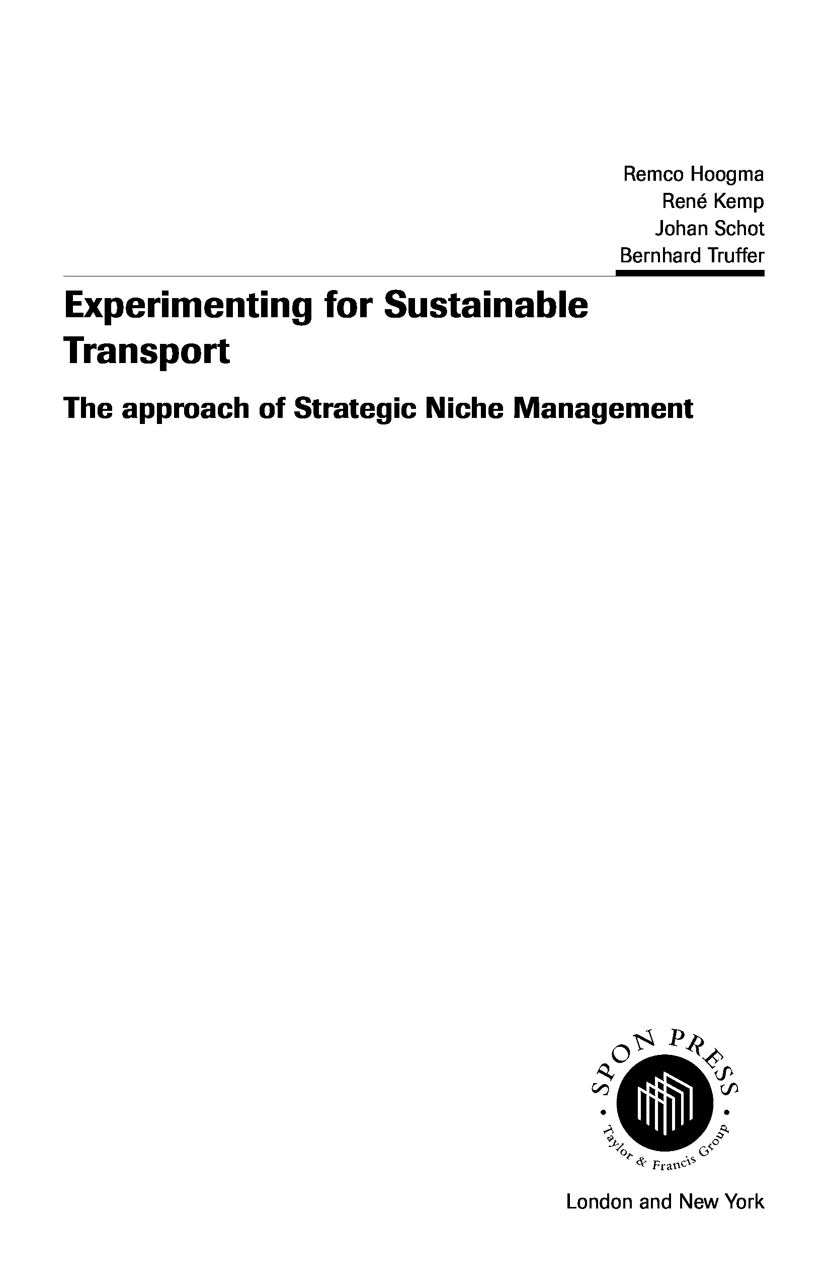 "Experimenting for Sustainable Transport: The Approach of Strategic Niche Management (Transport Development and Sustainability)" - читать интересную книгу автора (Remco Hoogma)