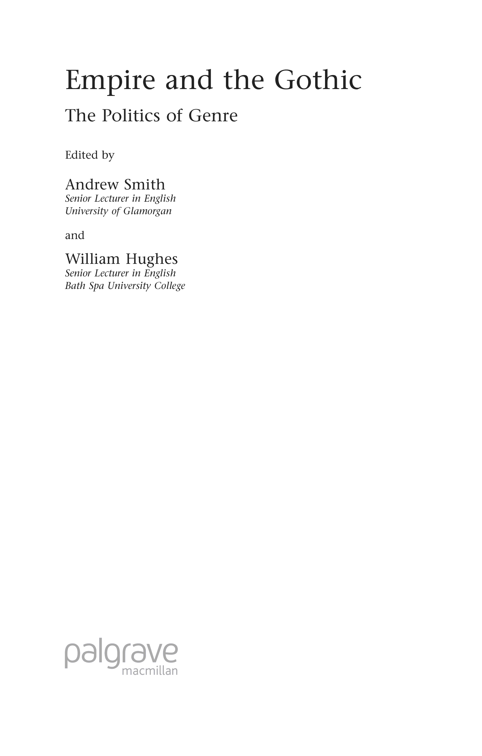 "Empire and the Gothic: The Politics of Genre" - читать интересную книгу автора (Andrew Smith, William Hughes)
