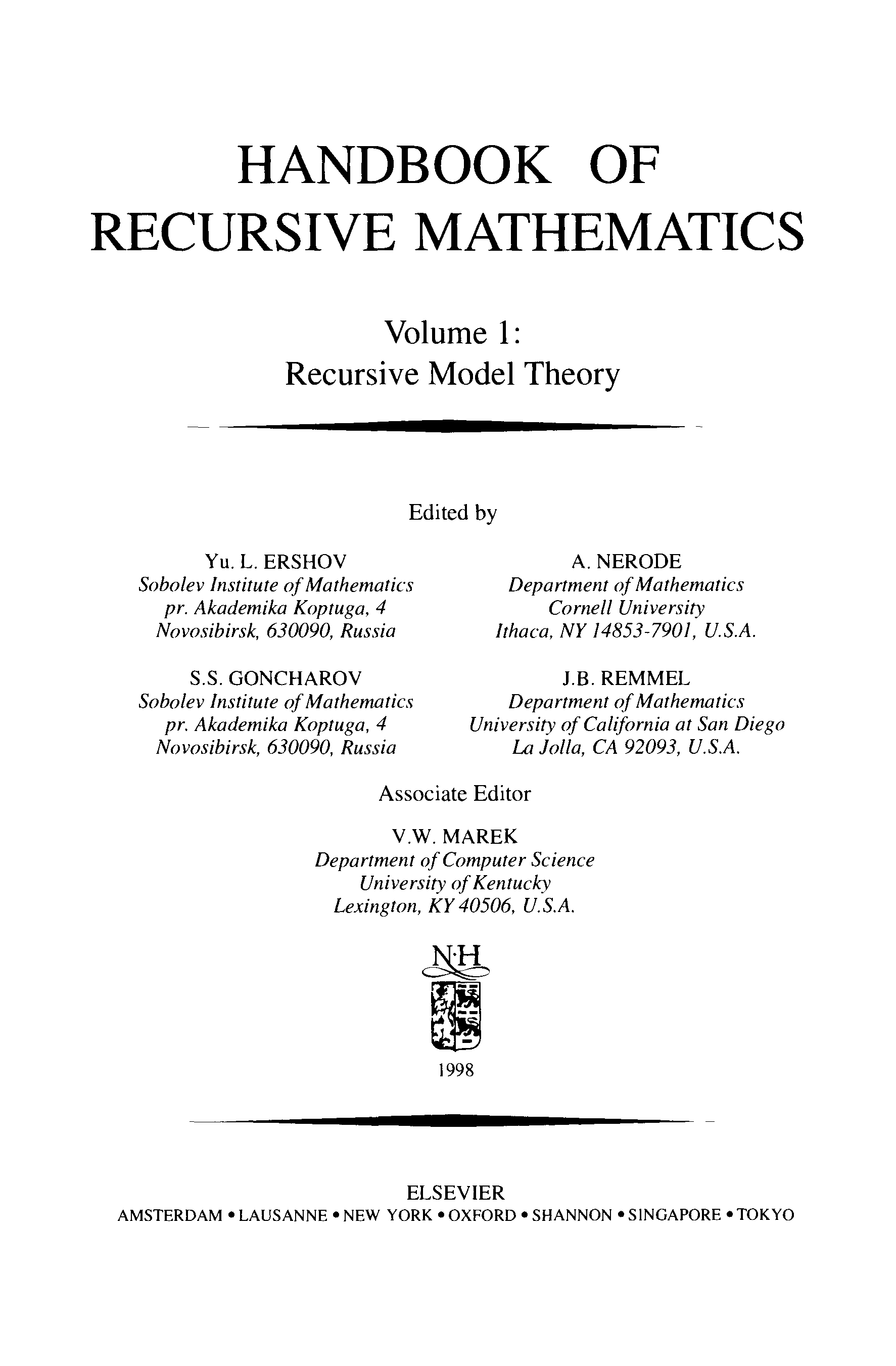 "Handbook of Recursive Mathematics : Volume 1: Recursive Model Theory (Studies in Logic and the Foundations of Mathematics)" - читать интересную книгу автора