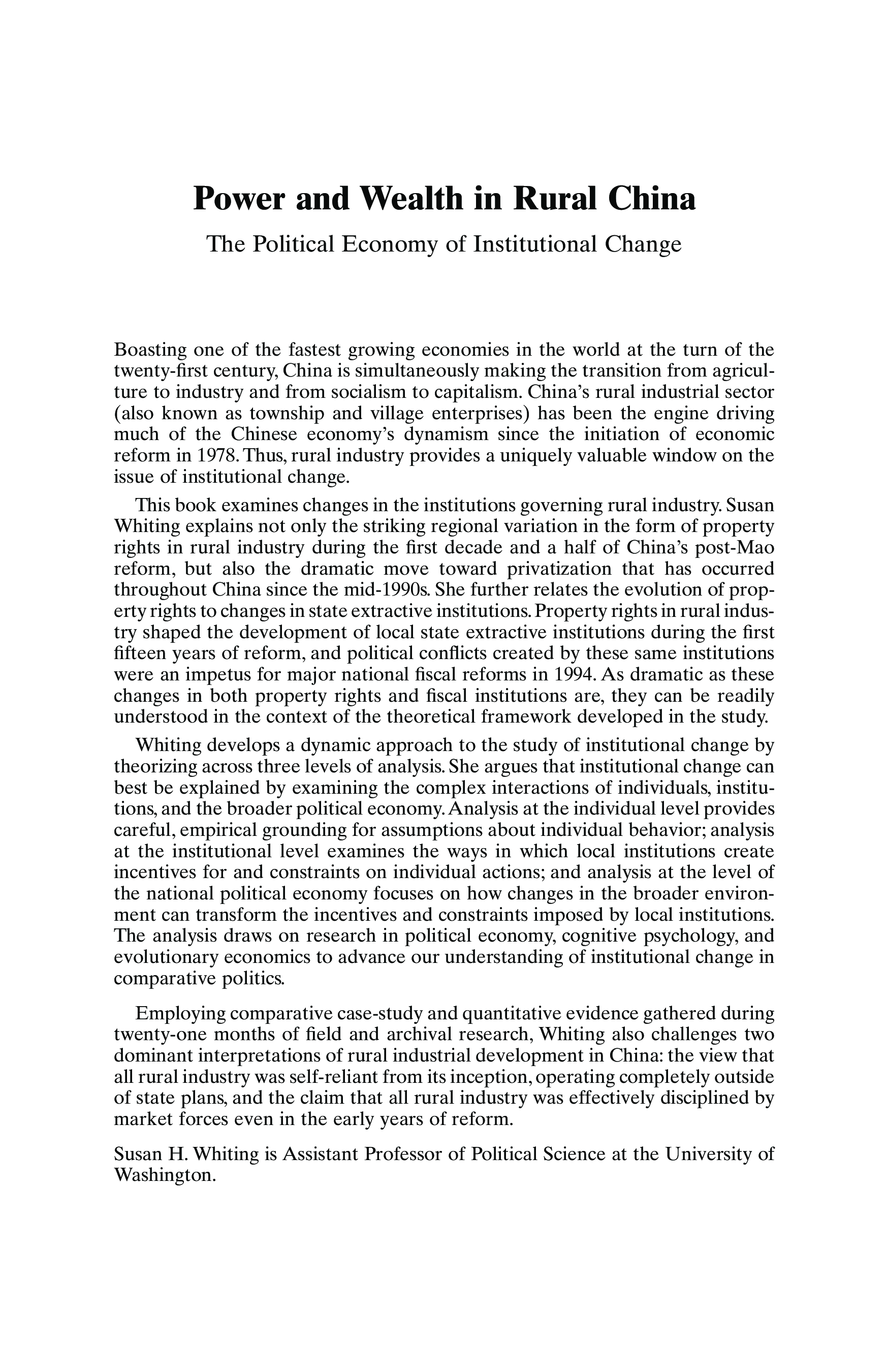 "Power and Wealth in Rural China: The Political Economy of Institutional Change (Cambridge Modern China Series)" - читать интересную книгу автора