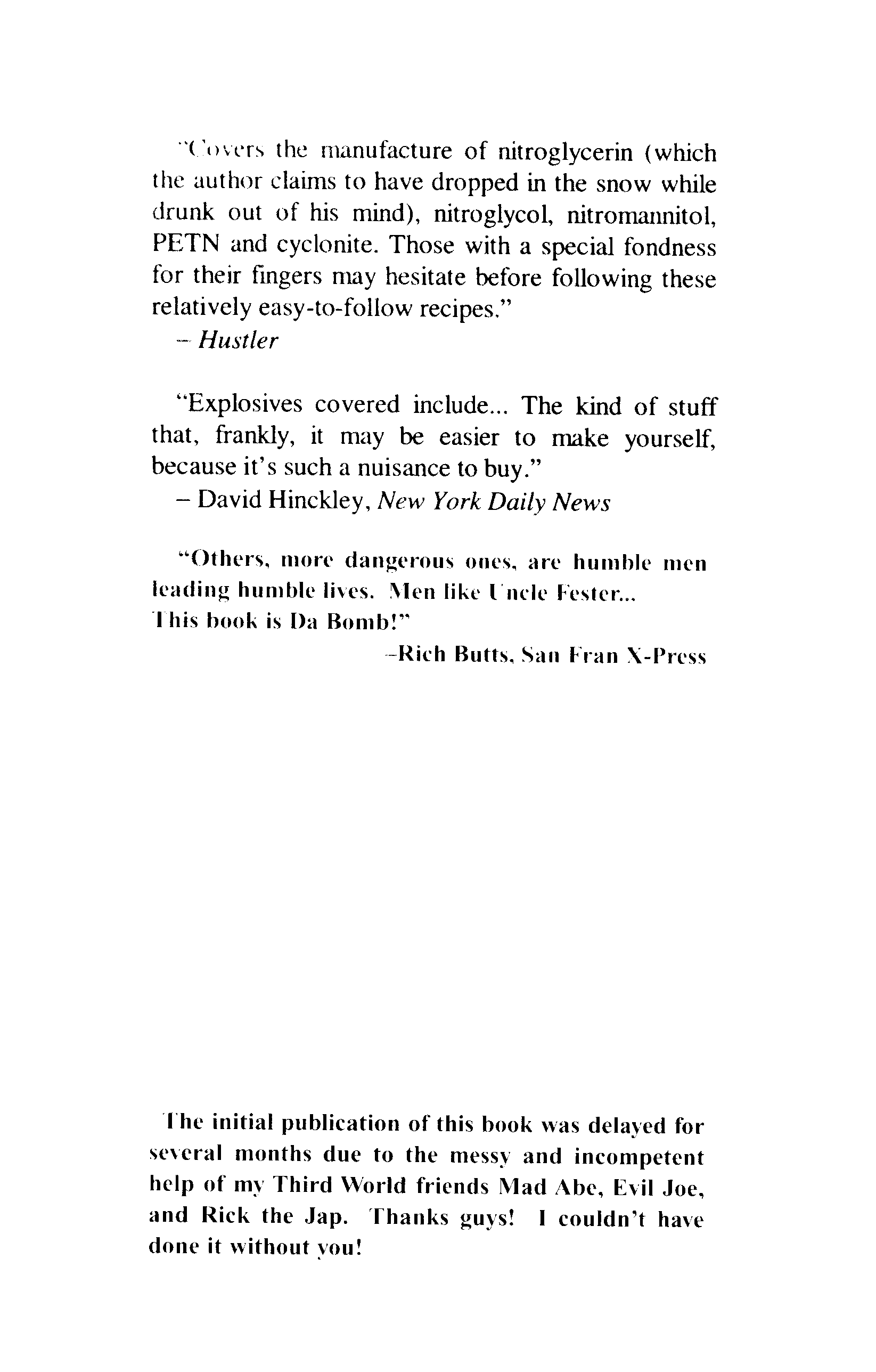 "Home Workshop Explosives" - читать интересную книгу автора (Uncle Fester)