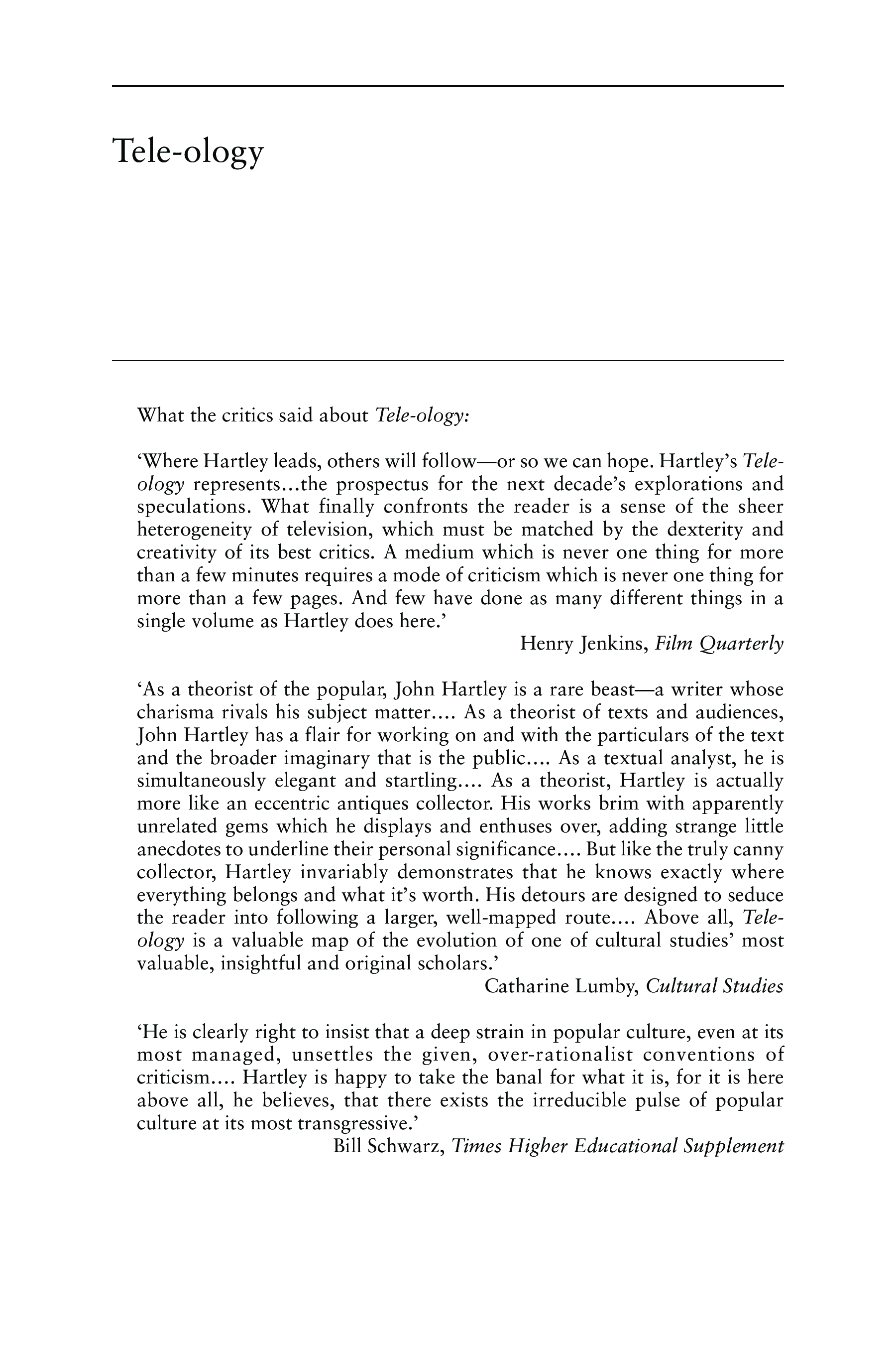 "Tele-ology: Studies in Television" - читать интересную книгу автора