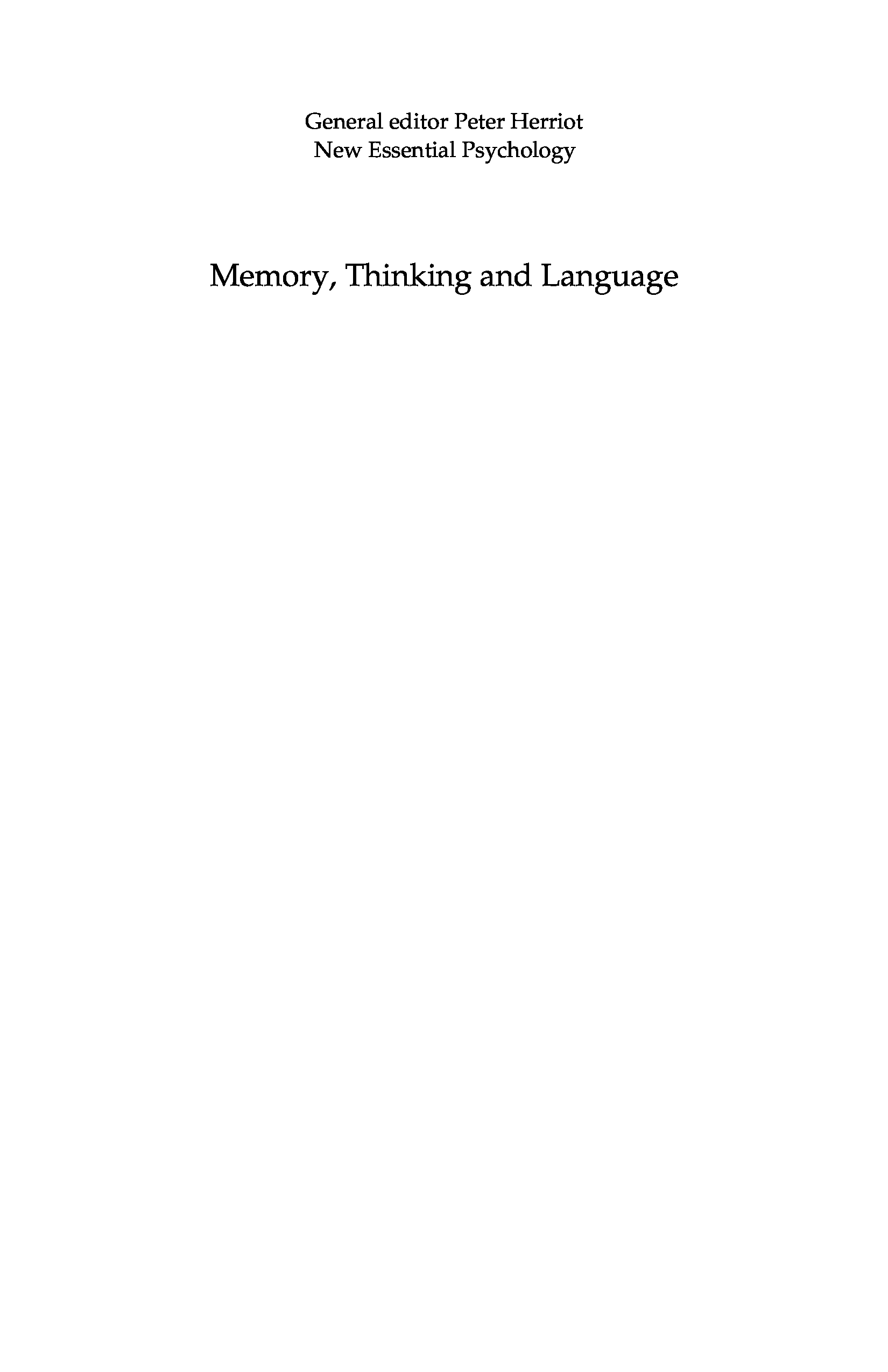 "Memory, Thinking and Language: Topics in Cognitive Psychology (New Essential Psychology)" - читать интересную книгу автора