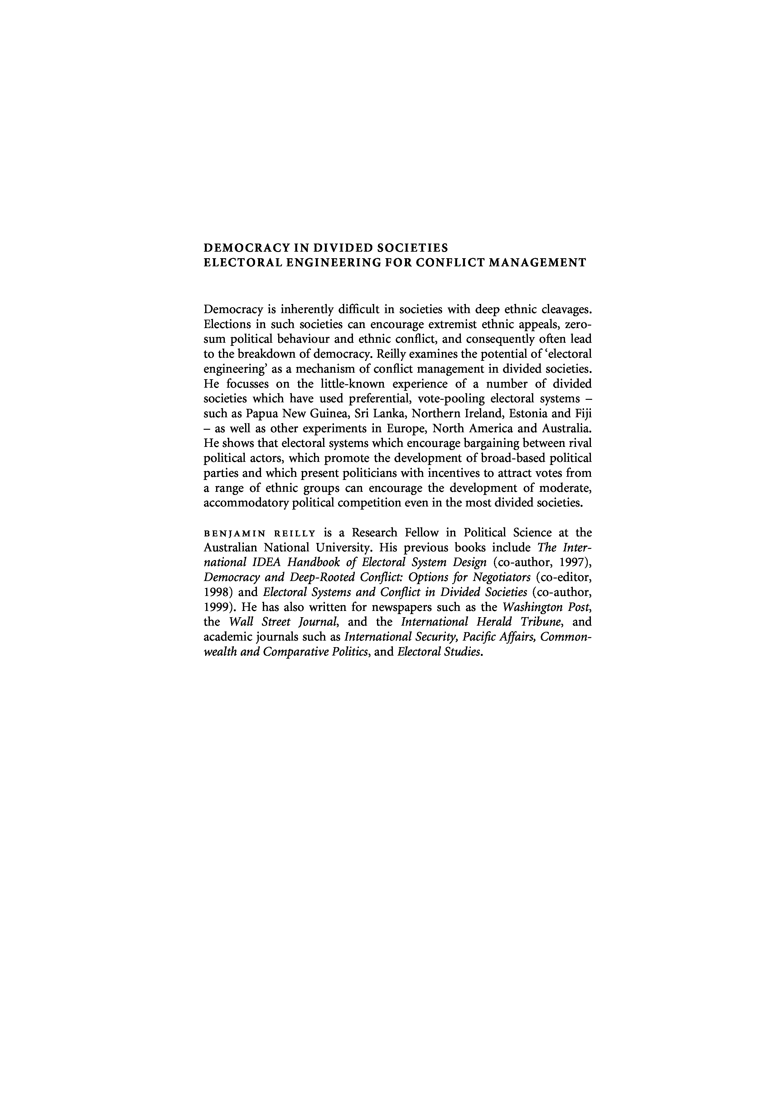 "Democracy in Divided Societies: Electoral Engineering for Conflict Management (Theories of Institutional Design)" - читать интересную книгу автора