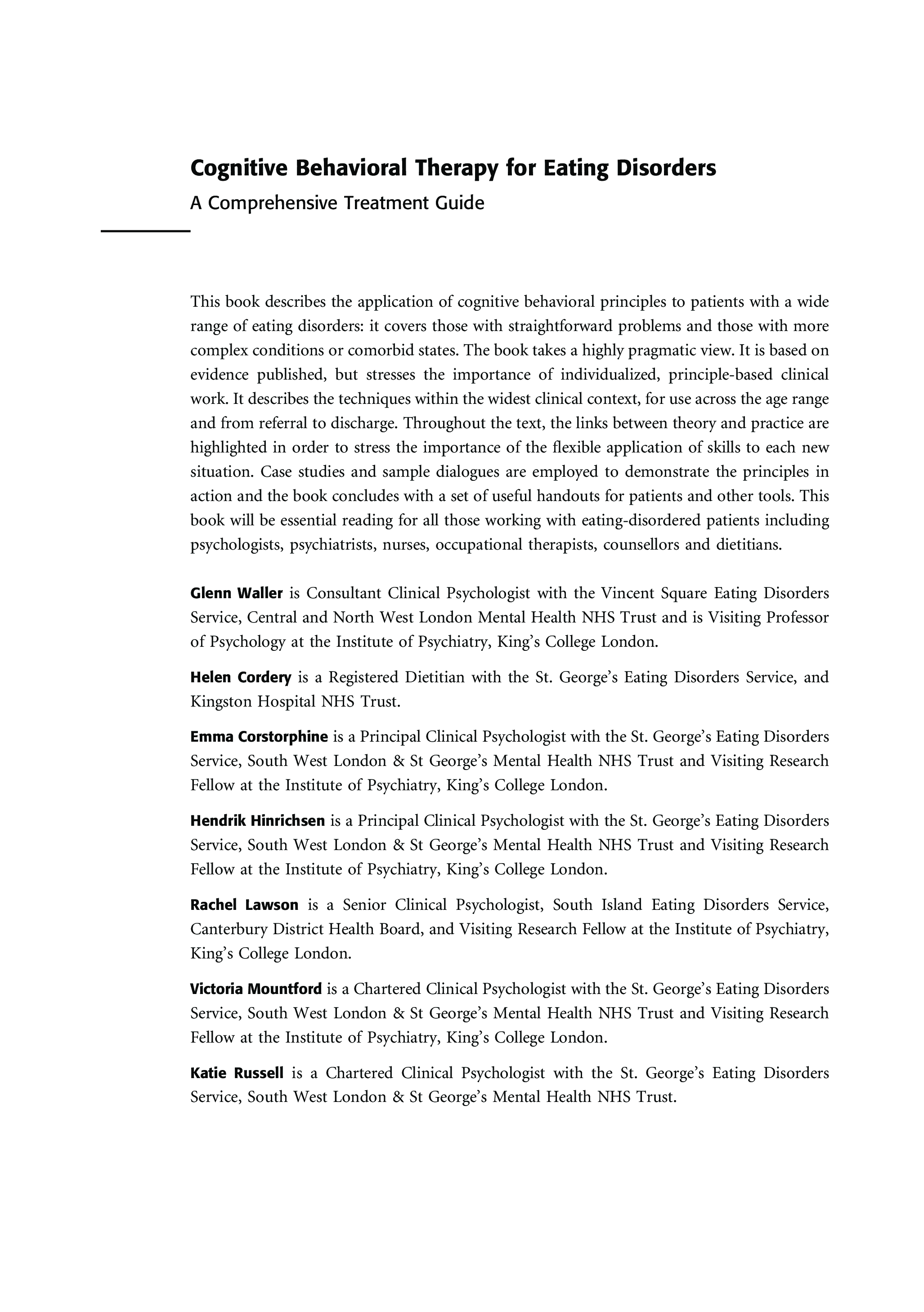 "Cognitive Behavioral Therapy for Eating Disorders: A Comprehensive Treatment Guide" - читать интересную книгу автора