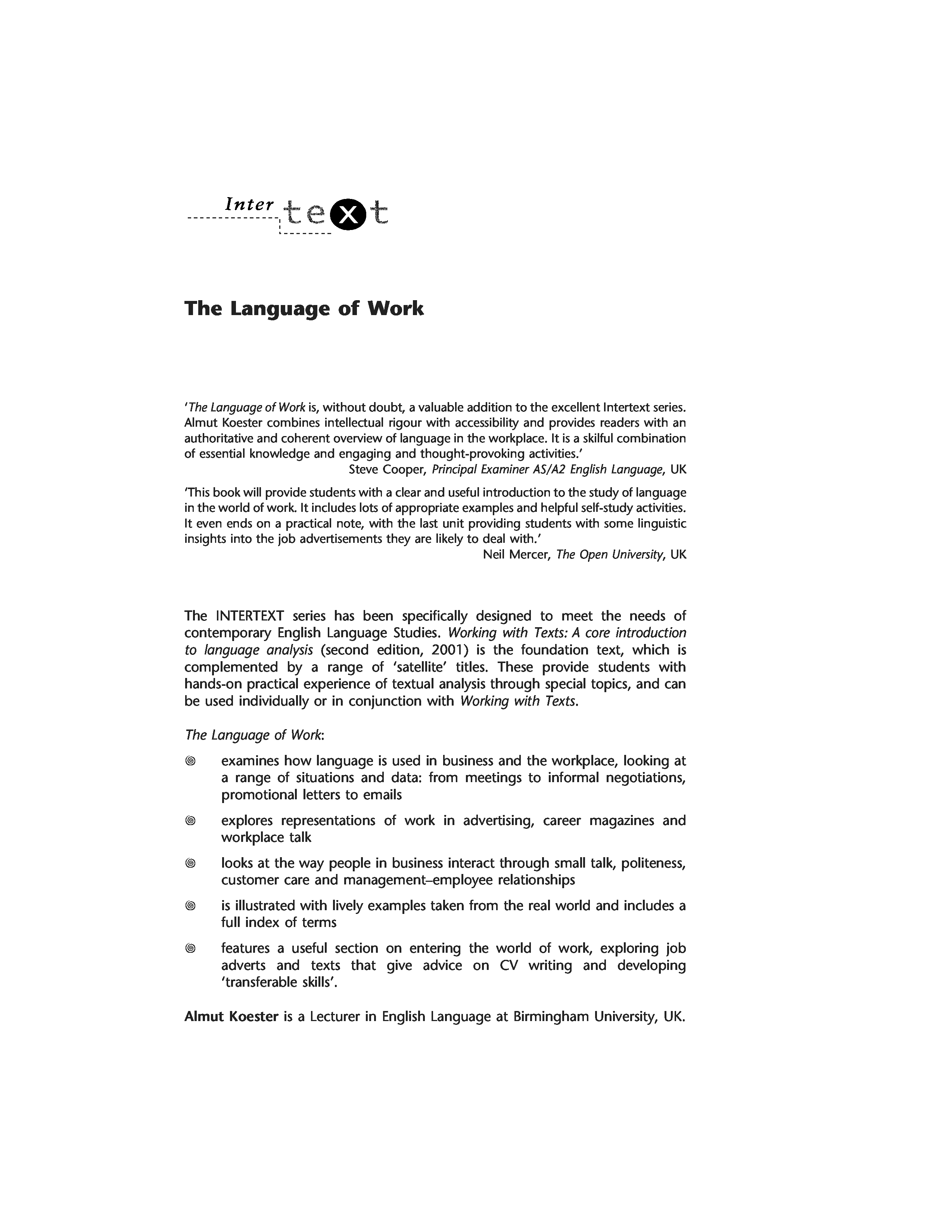 "The Language of Work (Intertext (London, England).)" - читать интересную книгу автора