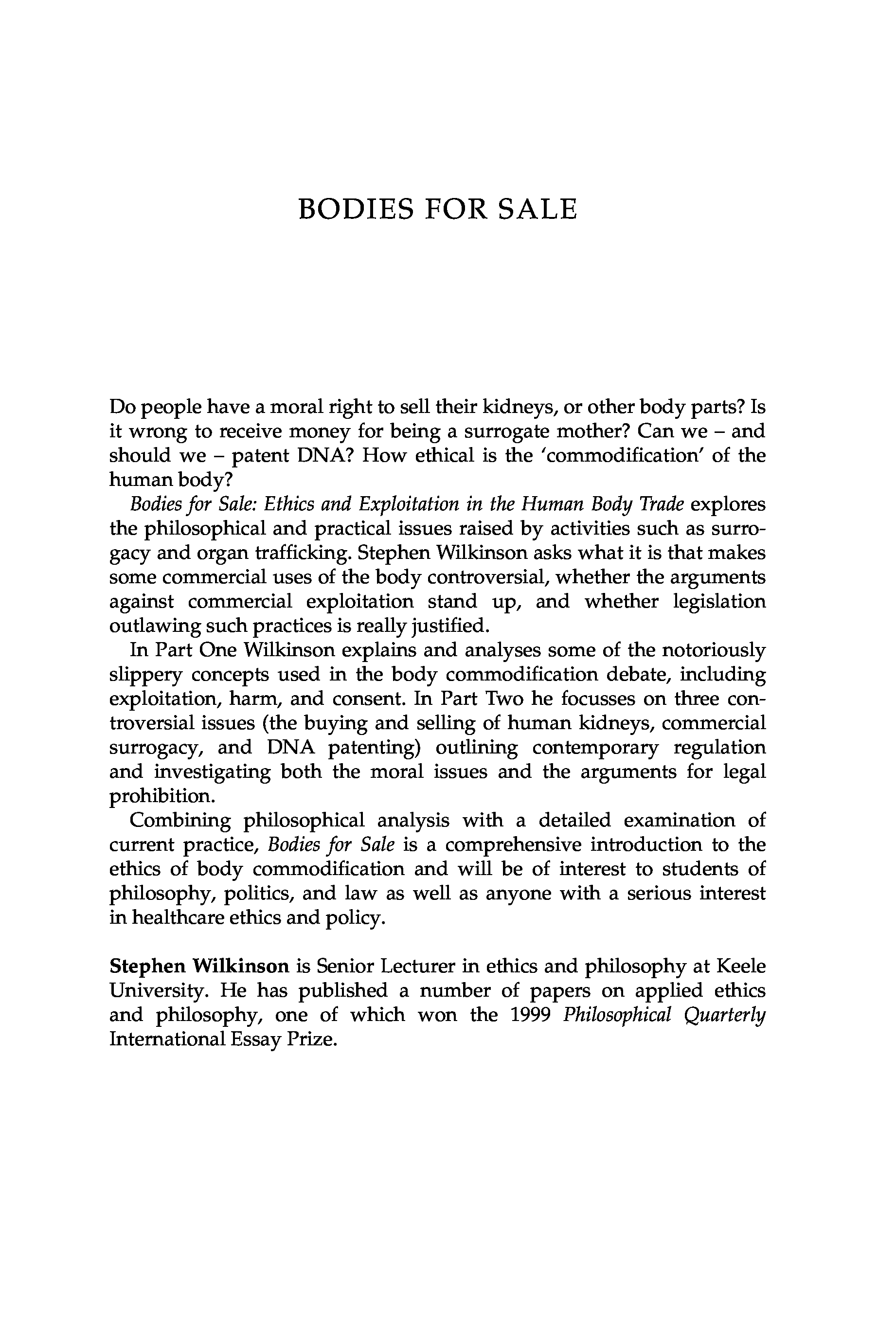 "Bodies for Sale: Ethics and Exploitation in the Human Body Trade" - читать интересную книгу автора