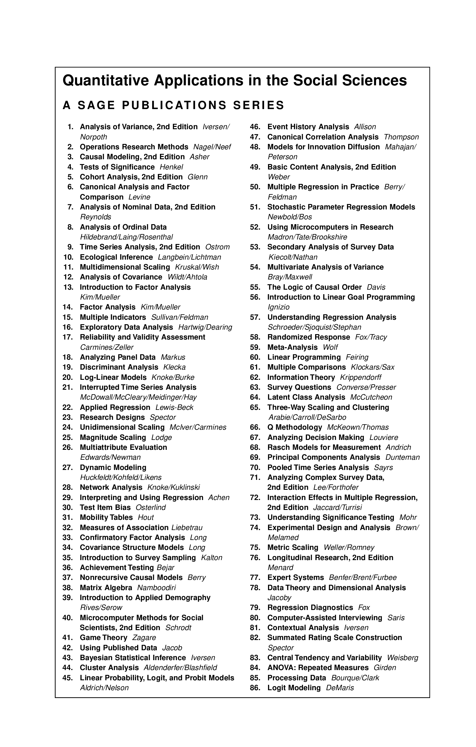 "Multiple Time Series Models (Quantitative Applications in the Social Sciences)" - читать интересную книгу автора (Patrick T. Brandt, John Taylor Williams)