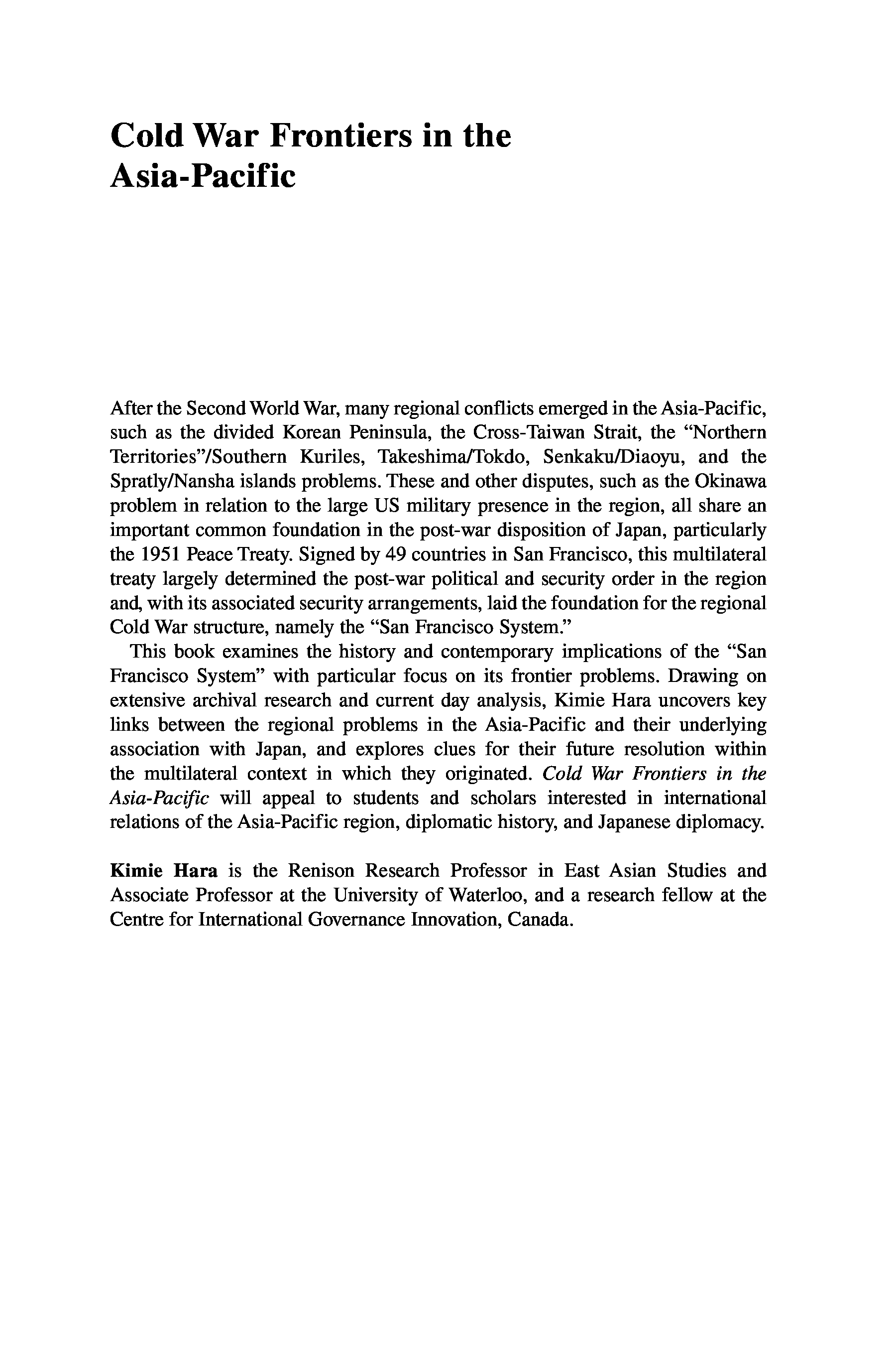 "Cold War Frontiers in the Asia-Pacific: Divided Territories in the San Francisco System (Nissan Institute Routledge Japanese Studies)" - читать интересную книгу автора