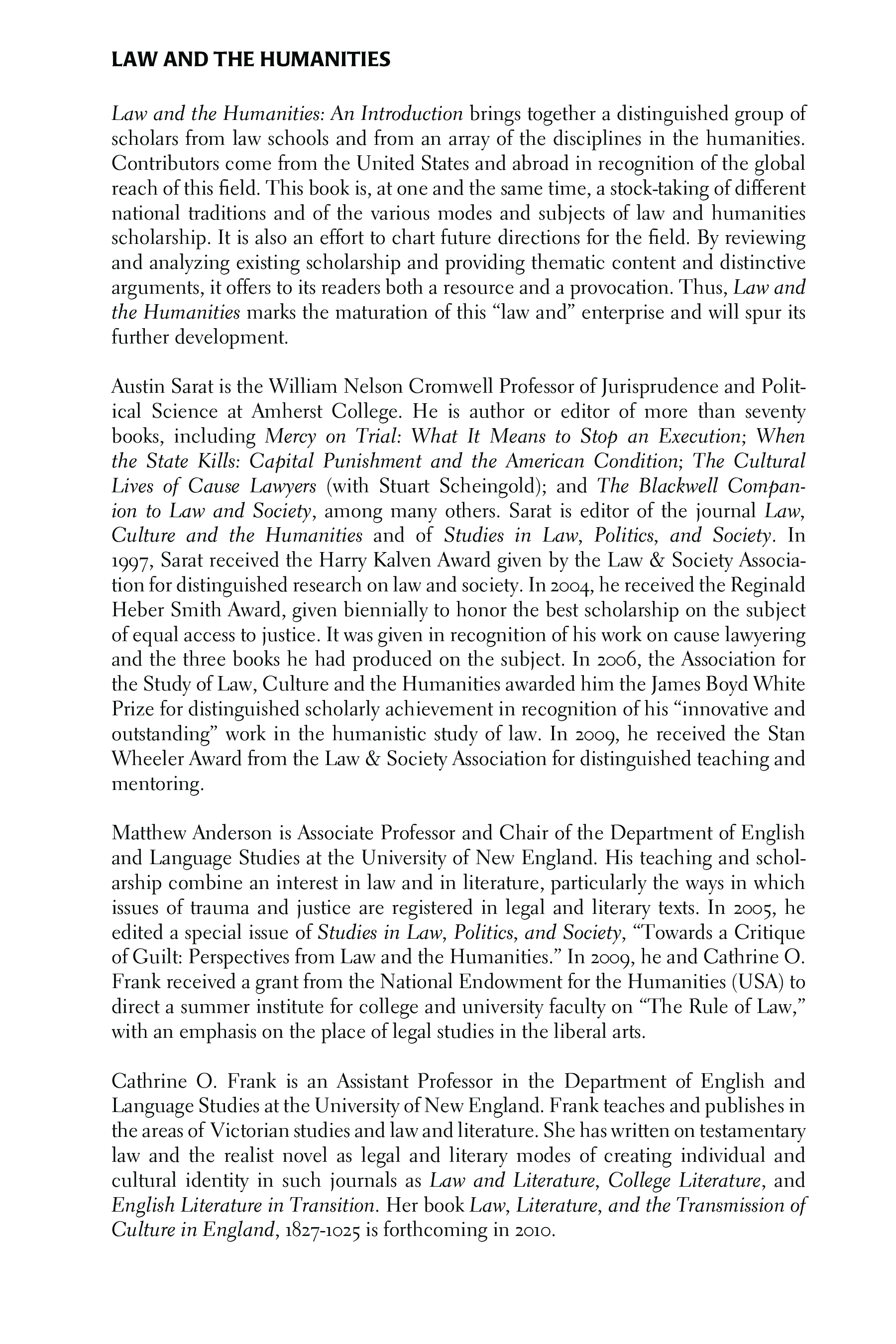 (Austin Sarat, Matthew Anderson, Cathrine O. Frank)