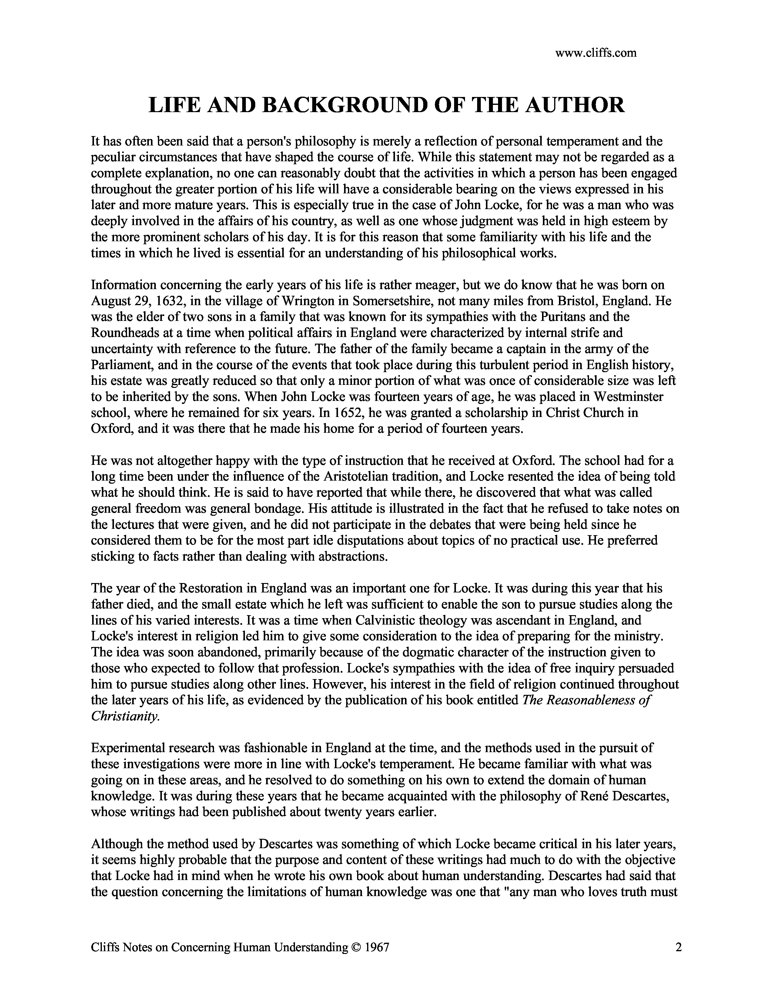 "Cliffs Notes on Locke's Concerning Human Understanding" - читать интересную книгу автора