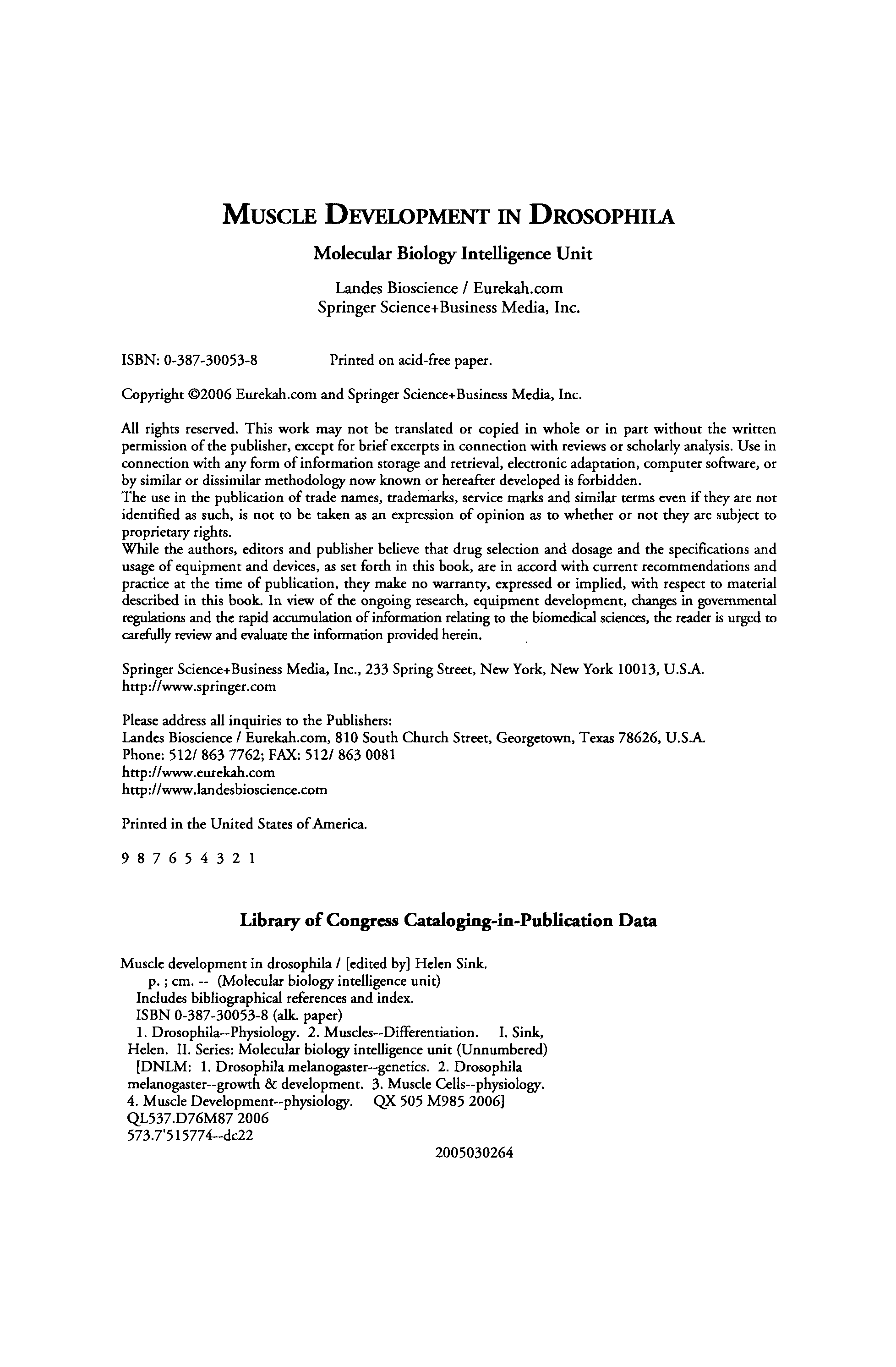 "Muscle Development in Drosophilia (Molecular Biology Intelligence Unit)" - читать интересную книгу автора