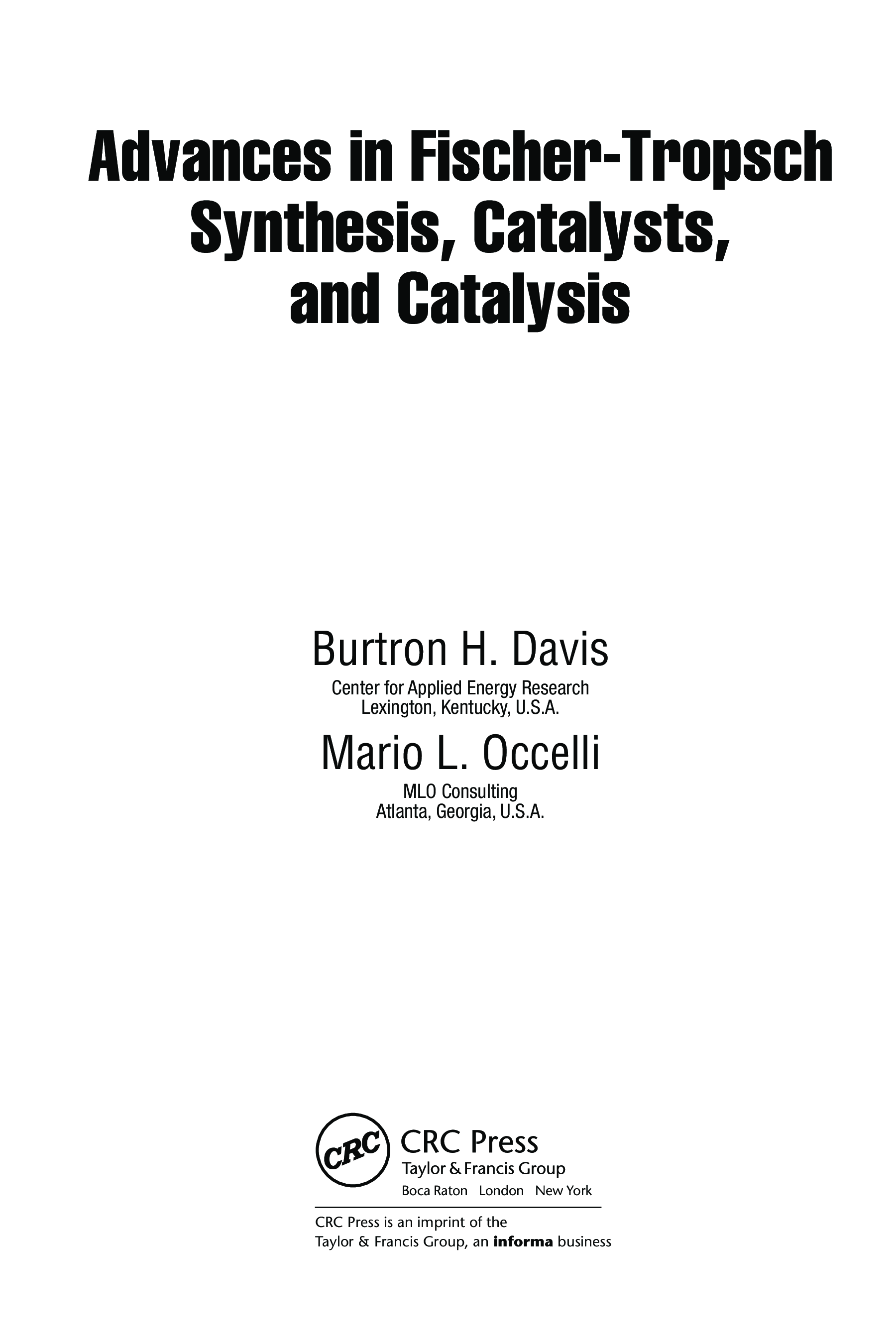 "Advances in Fischer-Tropsch Synthesis, Catalysts, and Catalysis (Chemical Industries)" - читать интересную книгу автора (B. H. Davis, Mario L. Occelli)