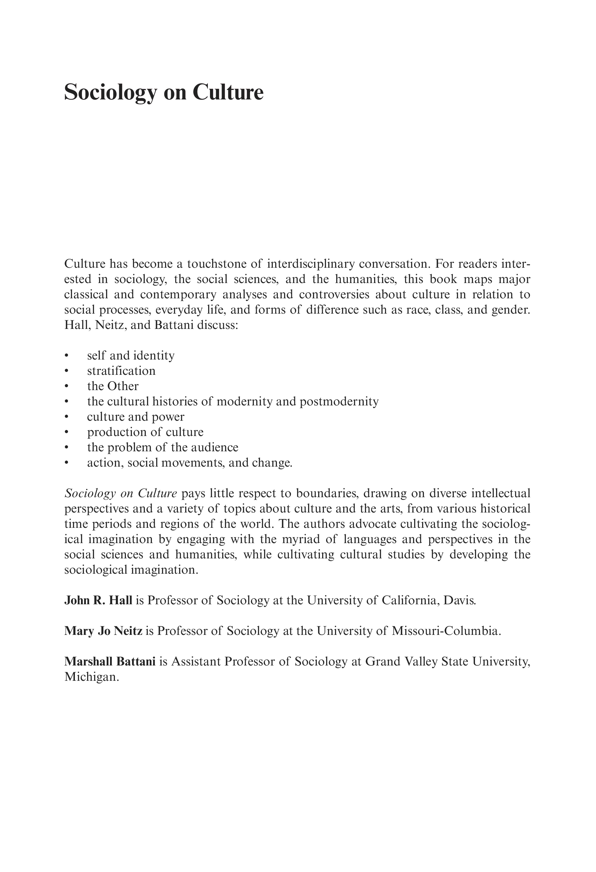 (John R. Hall, Mary Jo Neitz, Marshall Battani)