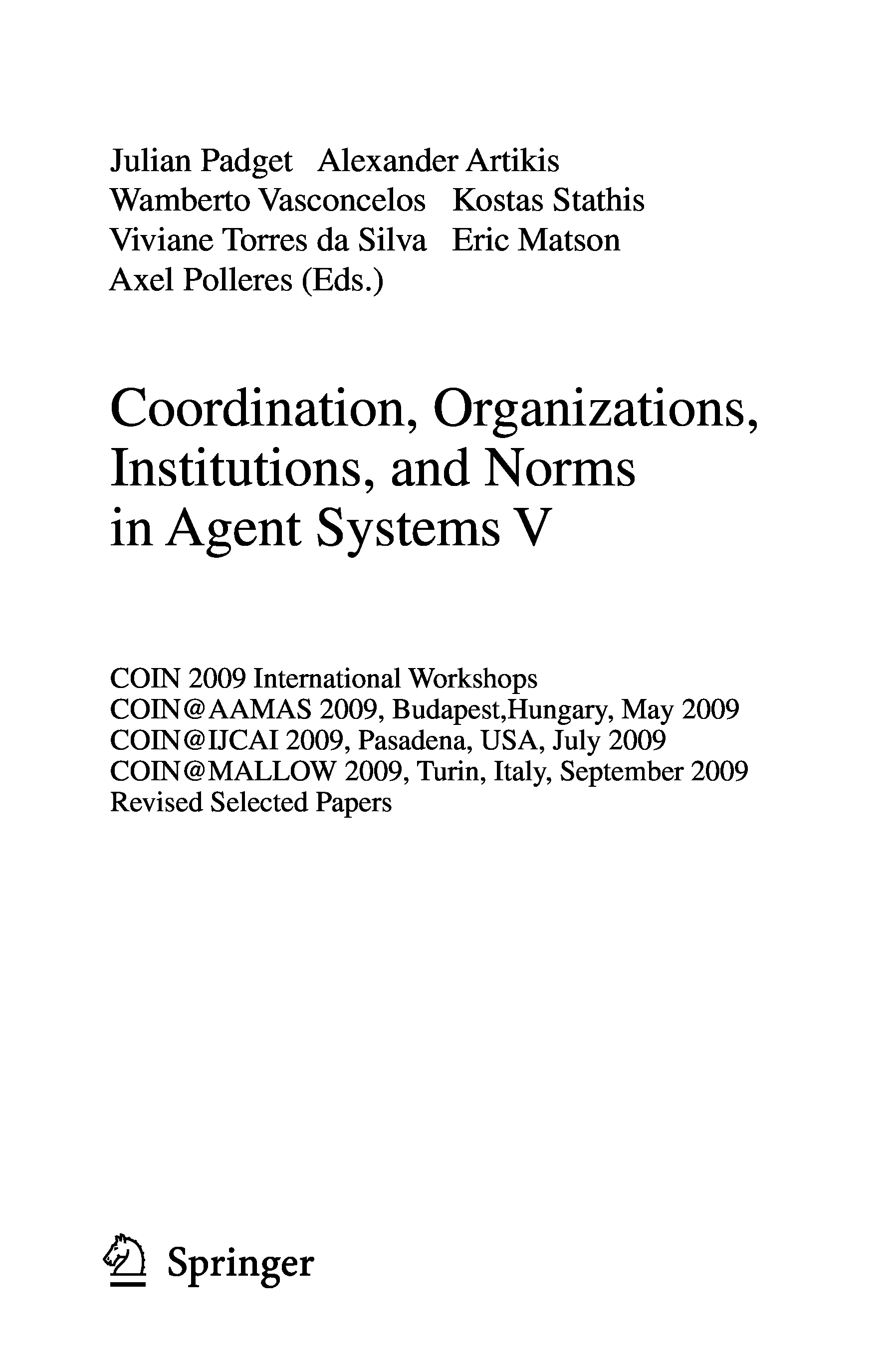 "Coordination, Organizations, Institutions, and Norms in Agent Systems V: COIN 2009 International Workshops: COIN@AAMAS 2009 Budapest, Hungary, May 2009, ... Lecture Notes in Artificial Intelligence)" - читать интересную книгу автора (Julian Padget, Alexander Artikis, Wamberto Vasconcelos, Kostas Stathis, Viviane...) |