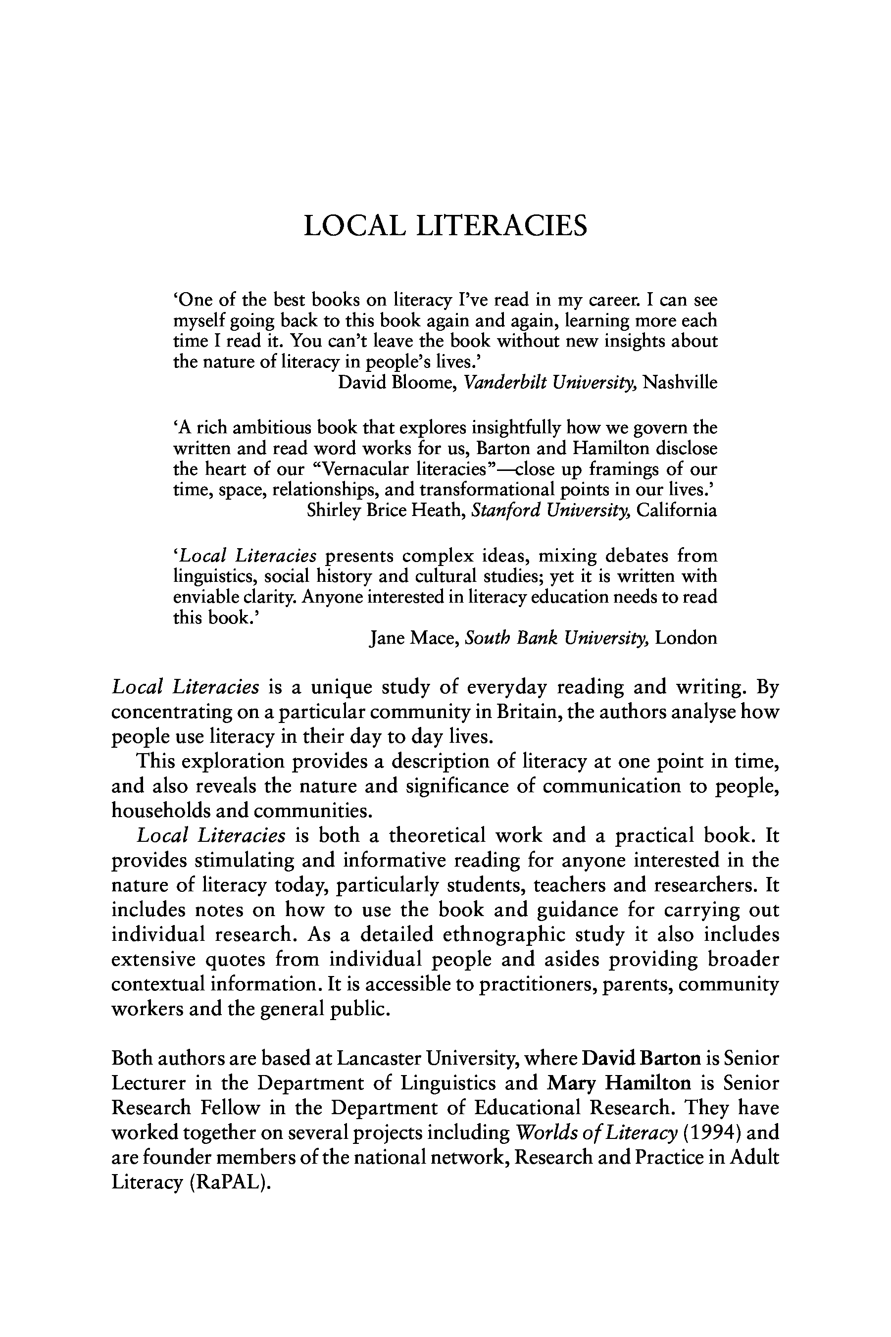 "Local Literacies: Reading and Writing in One Community" - читать интересную книгу автора (David Barton)