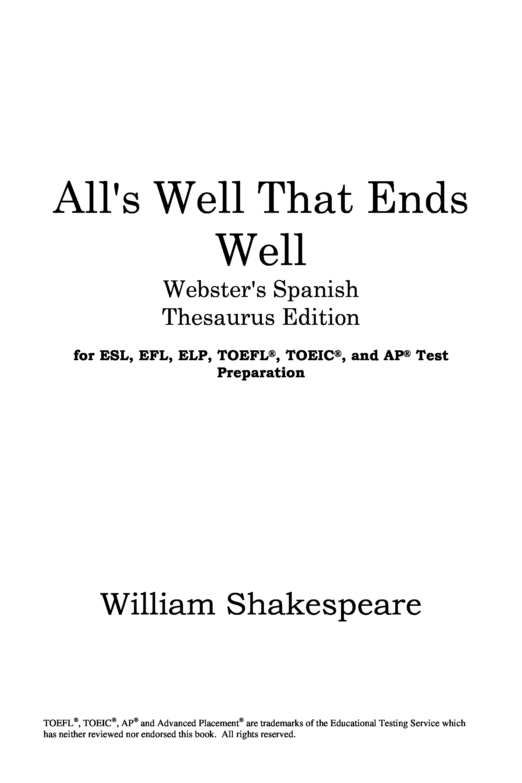 "All's Well That Ends Well (Webster's Spanish Thesaurus Edition)" - читать интересную книгу автора