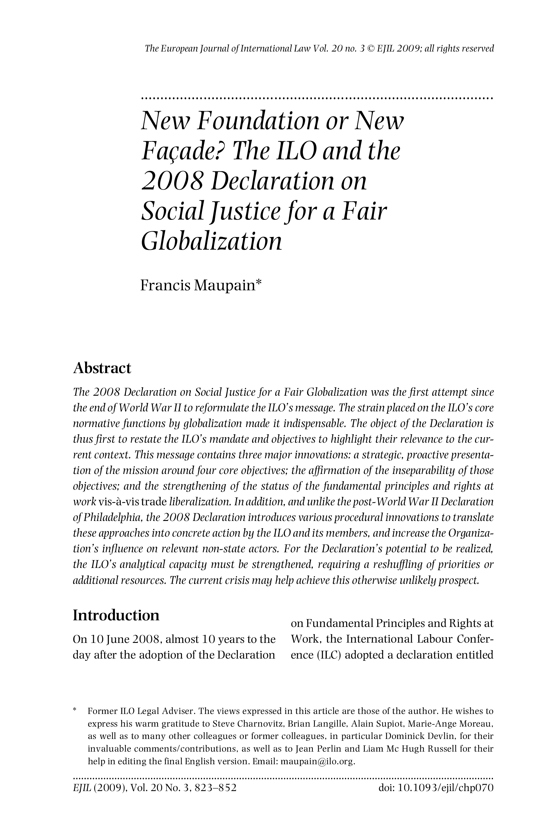 "The ILO and the 2008 Declaration on Social Justice for a Fair Globalization" - читать интересную книгу автора