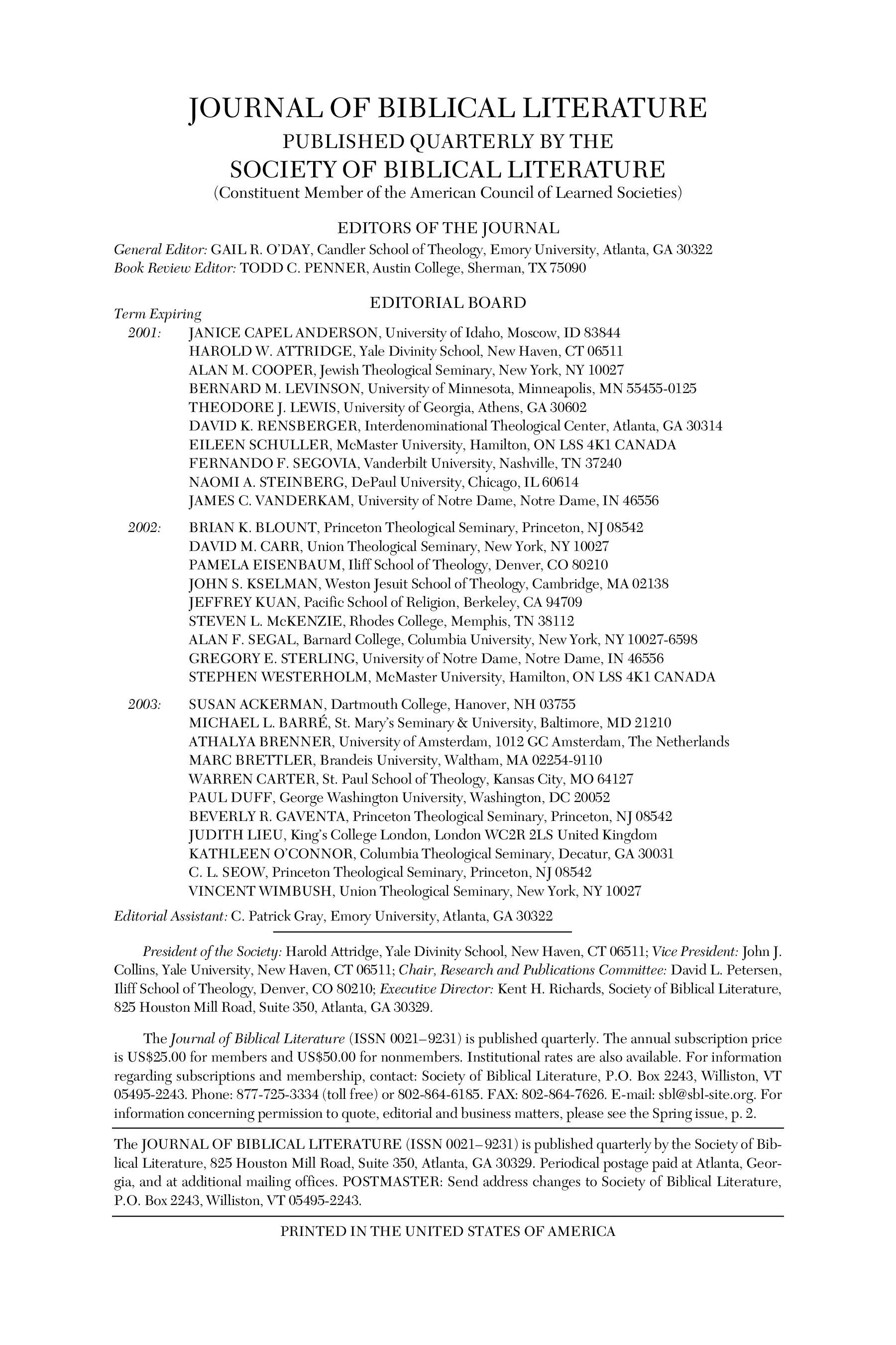 "Journal of Biblical Literature, Vol. 120, No. 3 (Fall 2001)" - читать интересную книгу автора (General Editor: GAIL R. O'DAY)