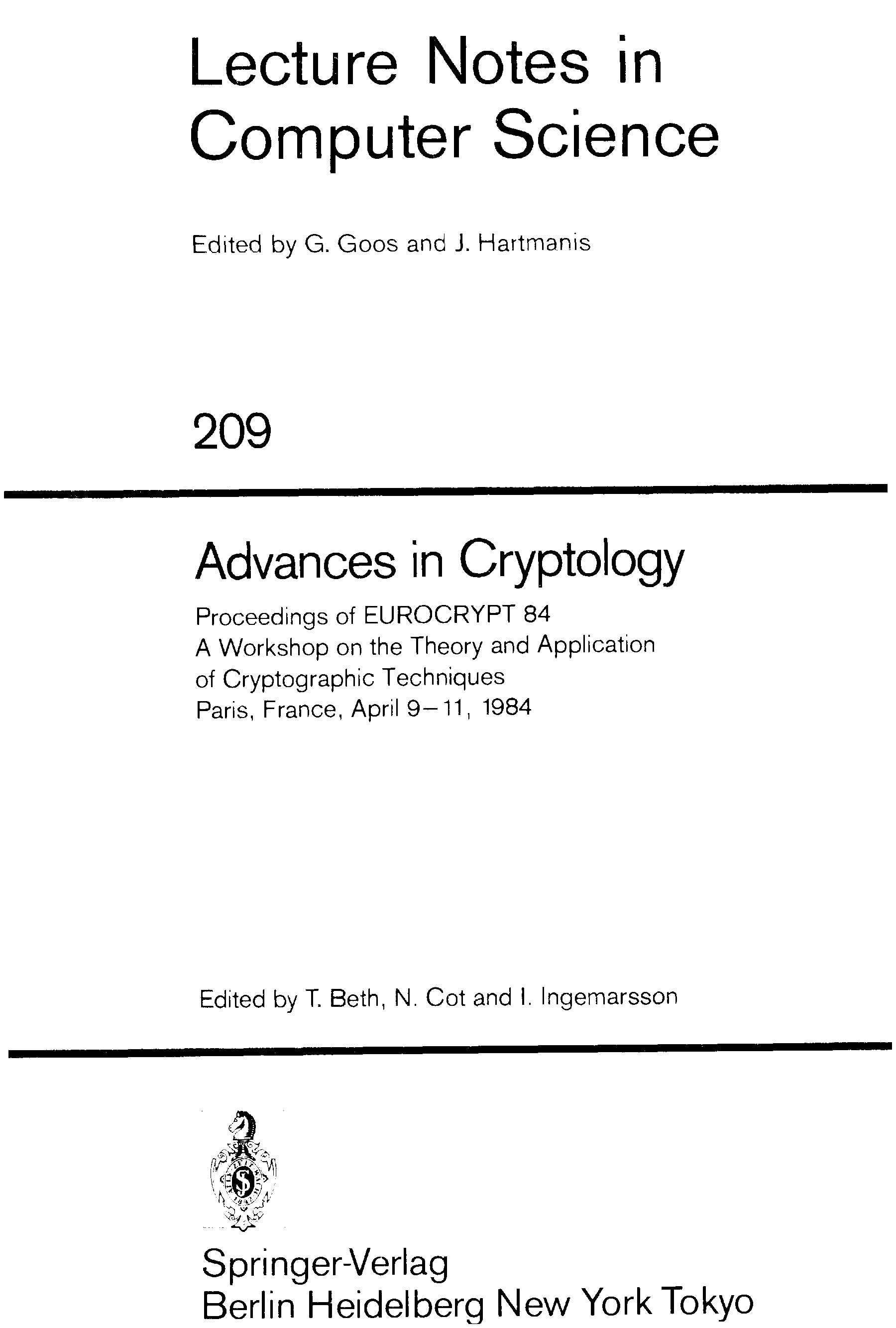 "Advances in Cryptology: Proceedings of EUROCRYPT 84" - читать интересную книгу автора