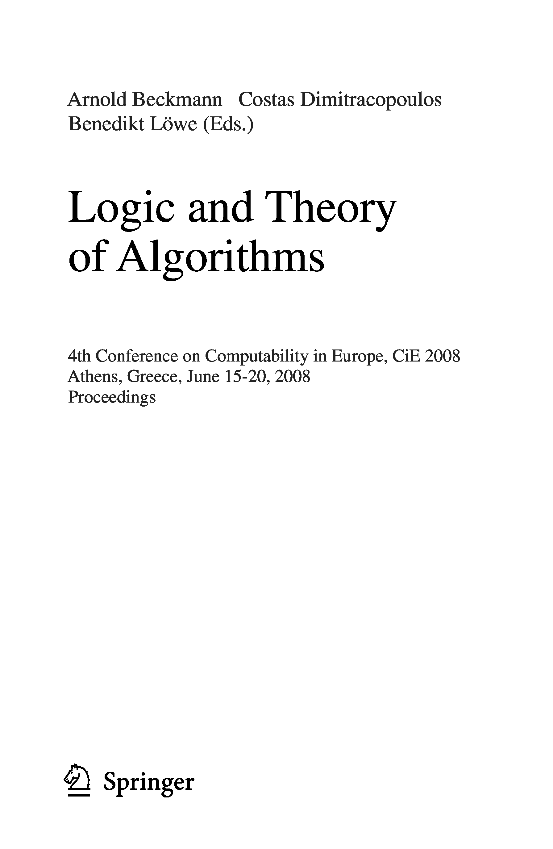 "Logic and Theory of Algorithms, 4 conf., CiE 2008" - читать интересную книгу автора