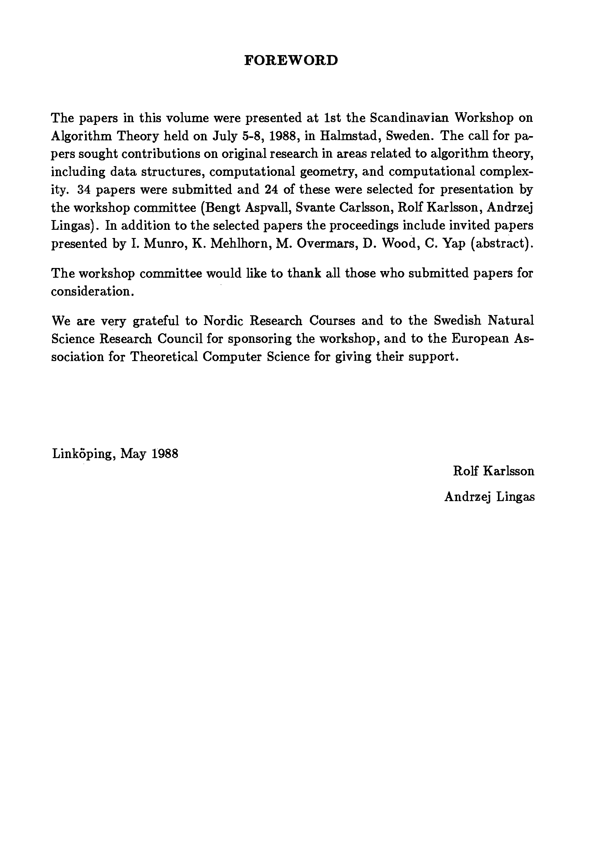 "Scandinavian Workshop on Algorithm Theory, SWAT 88, 1 conf." - читать интересную книгу автора