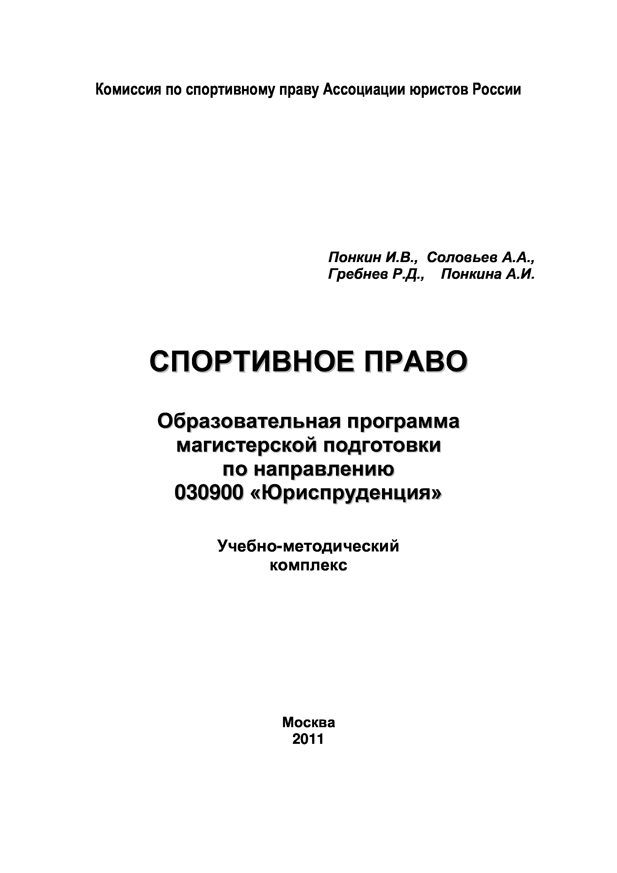 "Спортивное право: Образовательная программа магистерской подготовки по направлению «Юриспруденция»: Учебно-методический комплекс" - читать интересную книгу автора (Игорь Понкин, Андрей Соловьев, Руслан...)