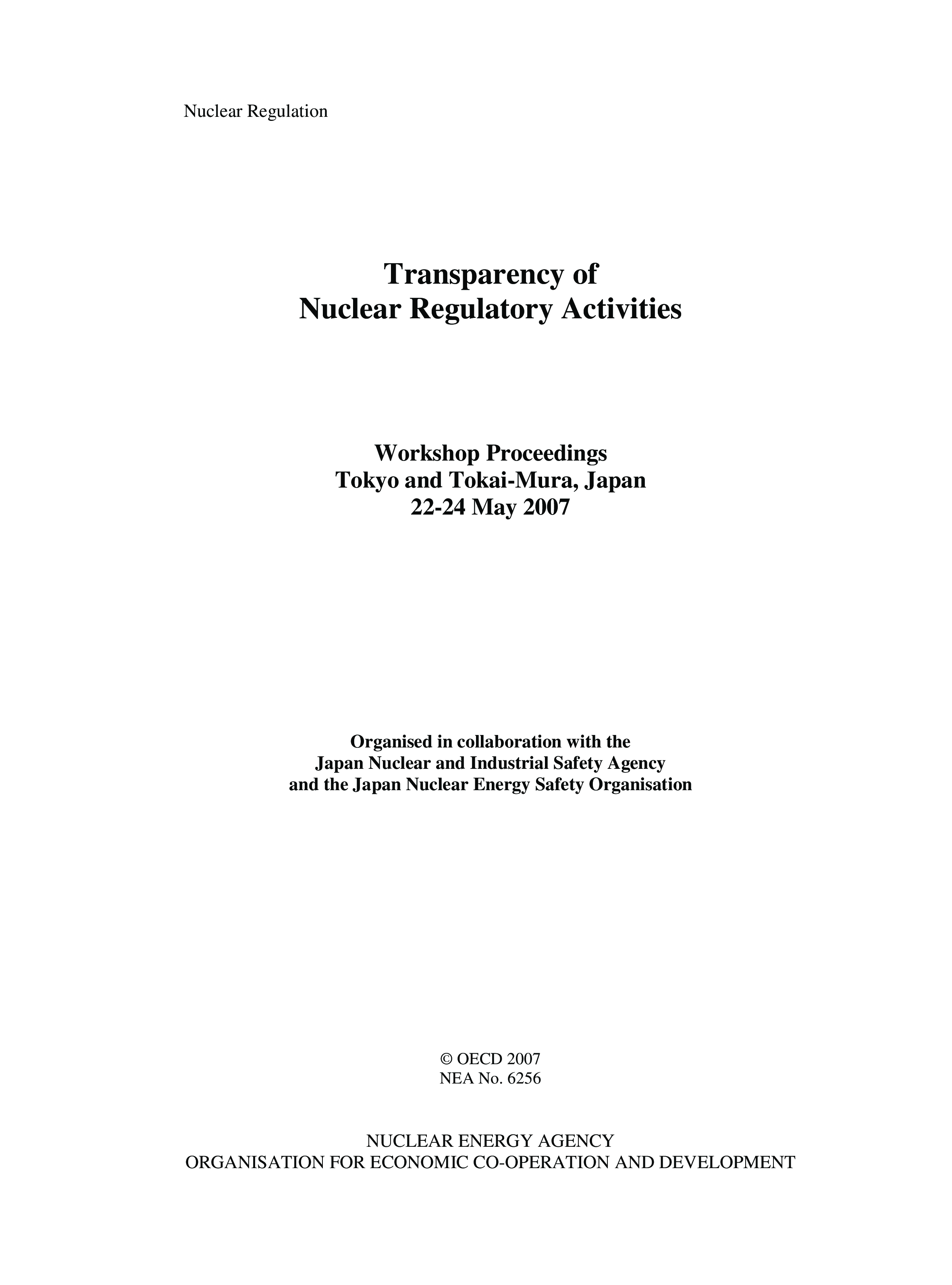 "Nuclear Regulation Transparency of Nuclear Regulatory Activities: Workshop proceedings - Tokyo and Tokai-Mura, Japan, 22-24 May 2007 (Nuclear Regulation)" - читать интересную книгу автора