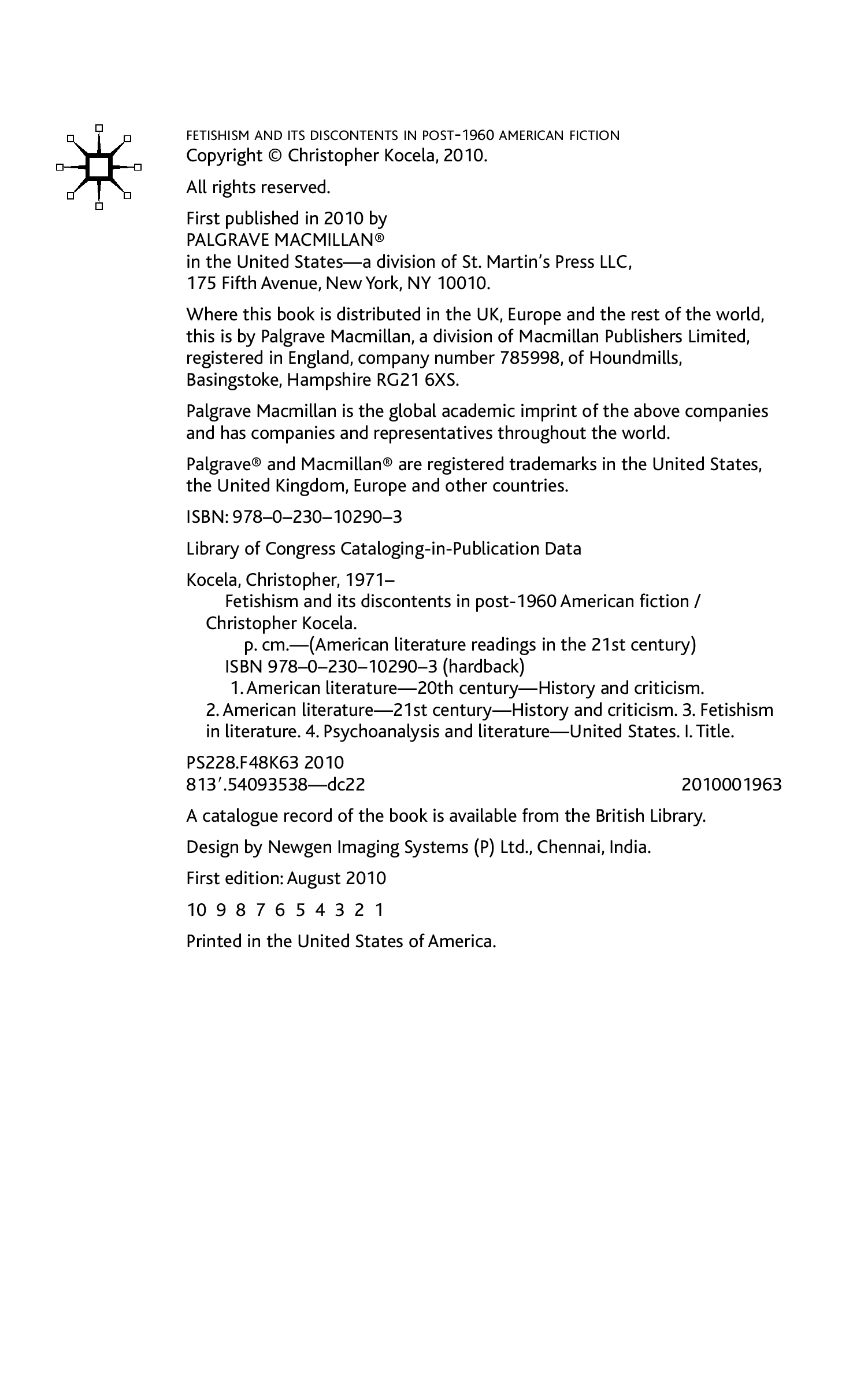 "Fetishism and Its Discontents in Post-1960 American Fiction (American Literature Readings in the 21st Century)" - читать интересную книгу автора
