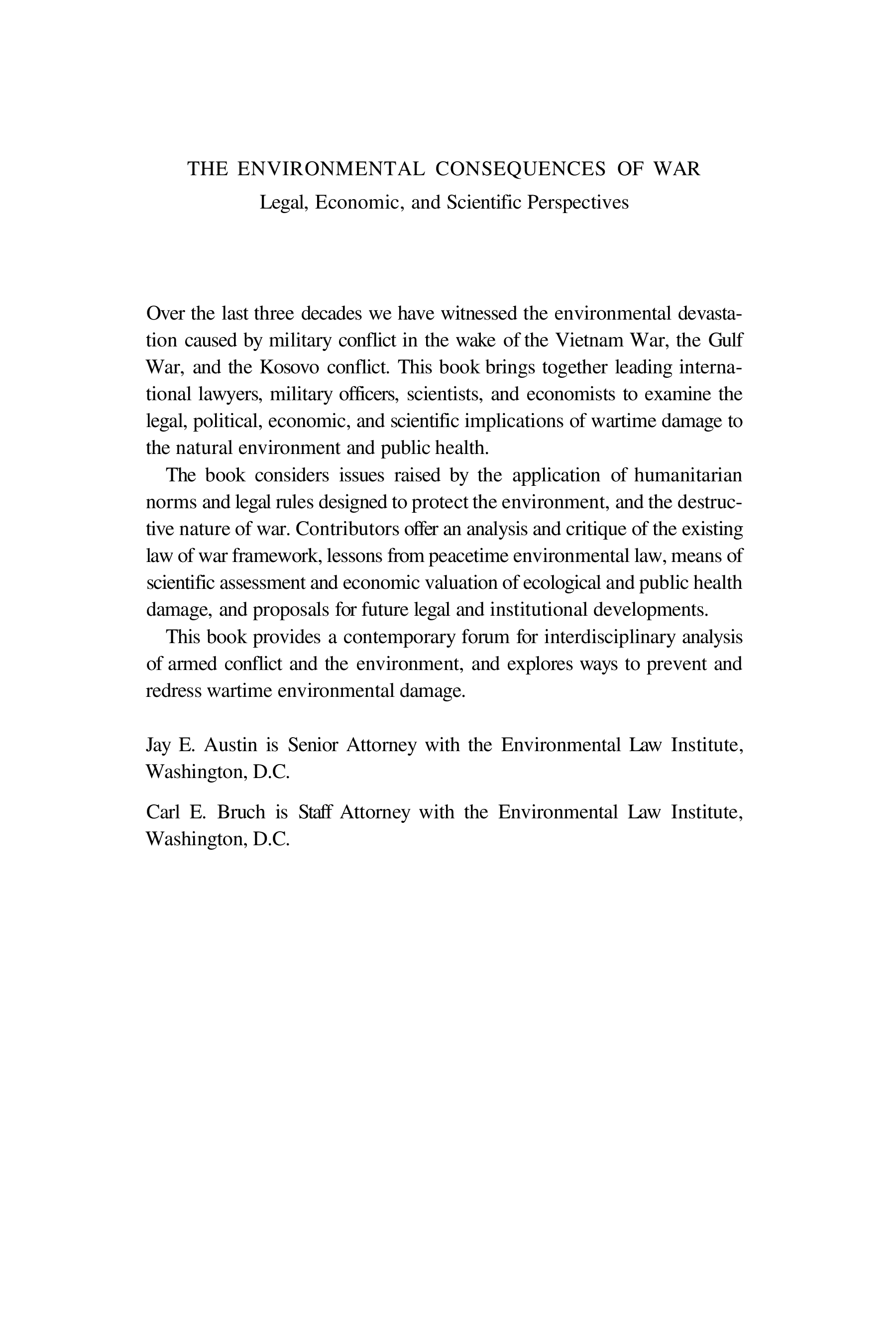 "The Environmental Consequences of War: Legal, Economic, and Scientific Perspectives" - читать интересную книгу автора (Jay E. Austin, Carl E. Bruch)