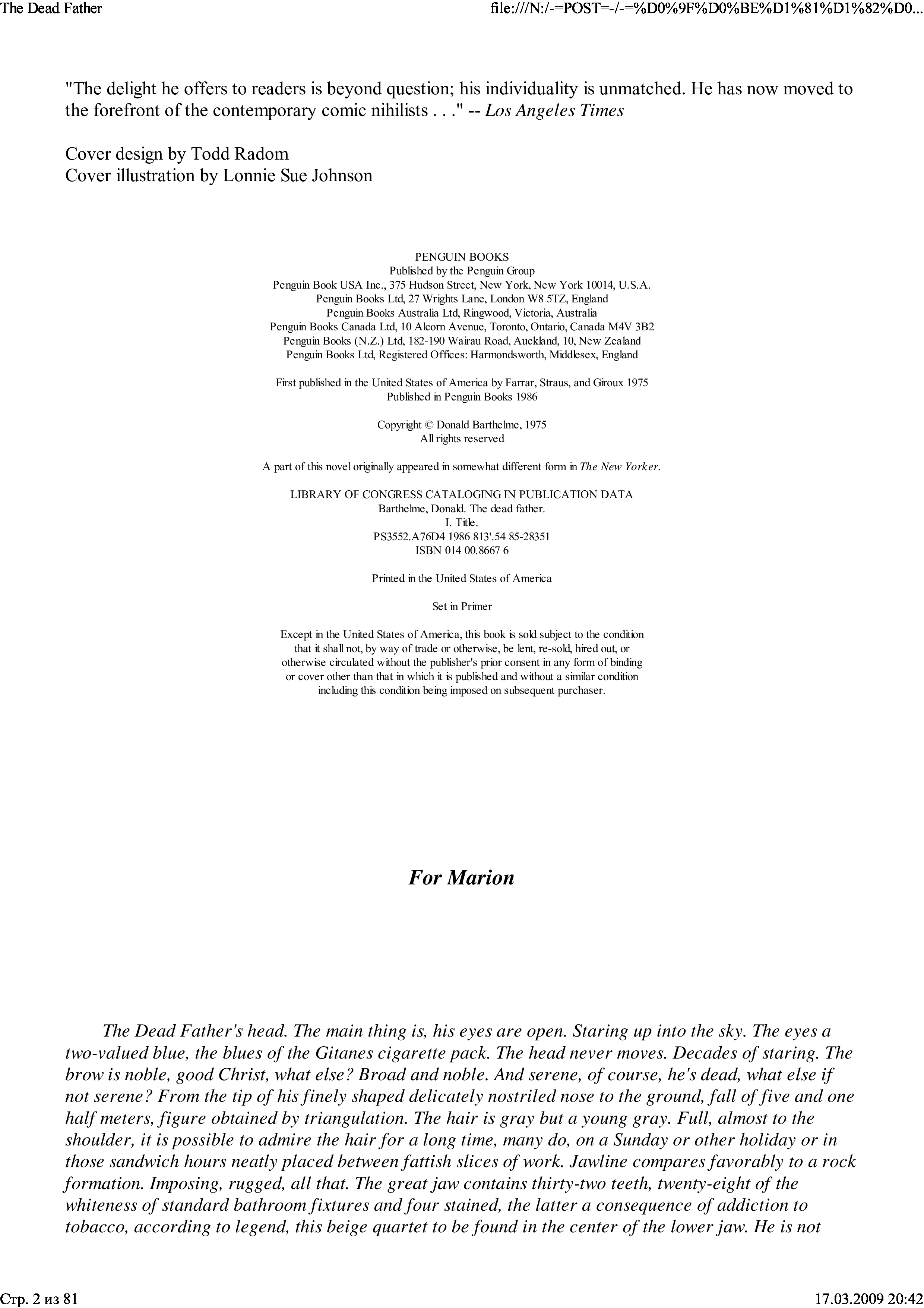"The Dead Father" - читать интересную книгу автора