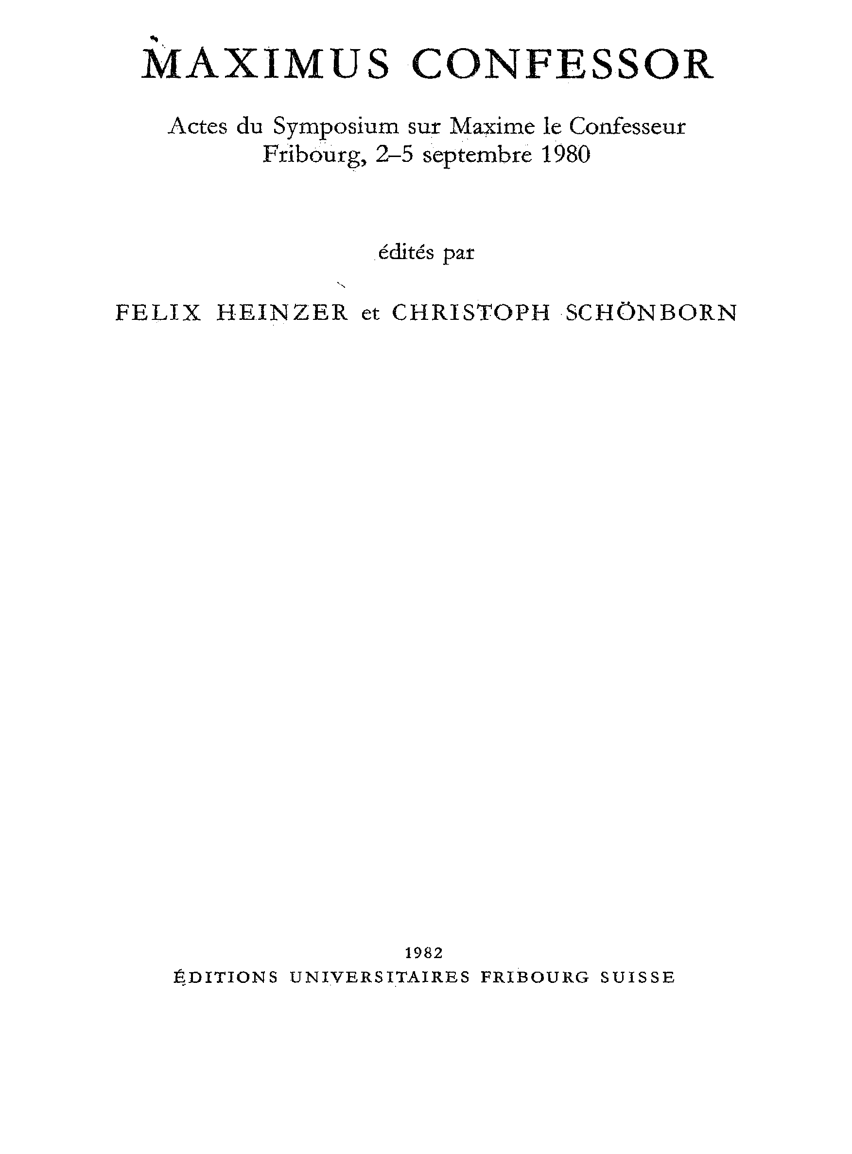"Actes du Symposium sur Maxime le Confesseur, Fribourg, 2-5 septembre, 1980 (Maximus the Confessor)" - читать интересную книгу автора