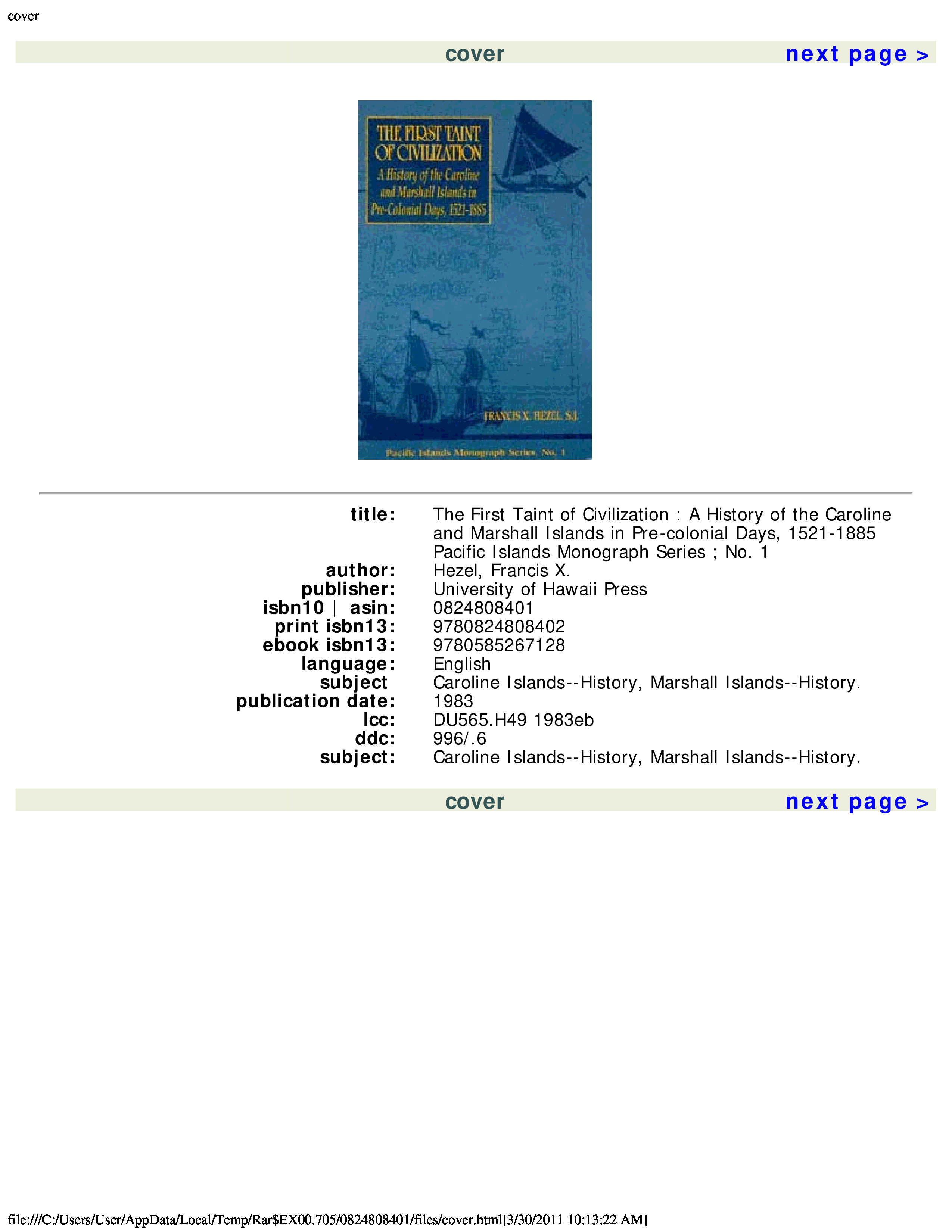 "The First Taint of Civilization: A History of the Caroline and Marshall Islands in Pre-Colonial Days, 1521-1885" - читать интересную книгу автора