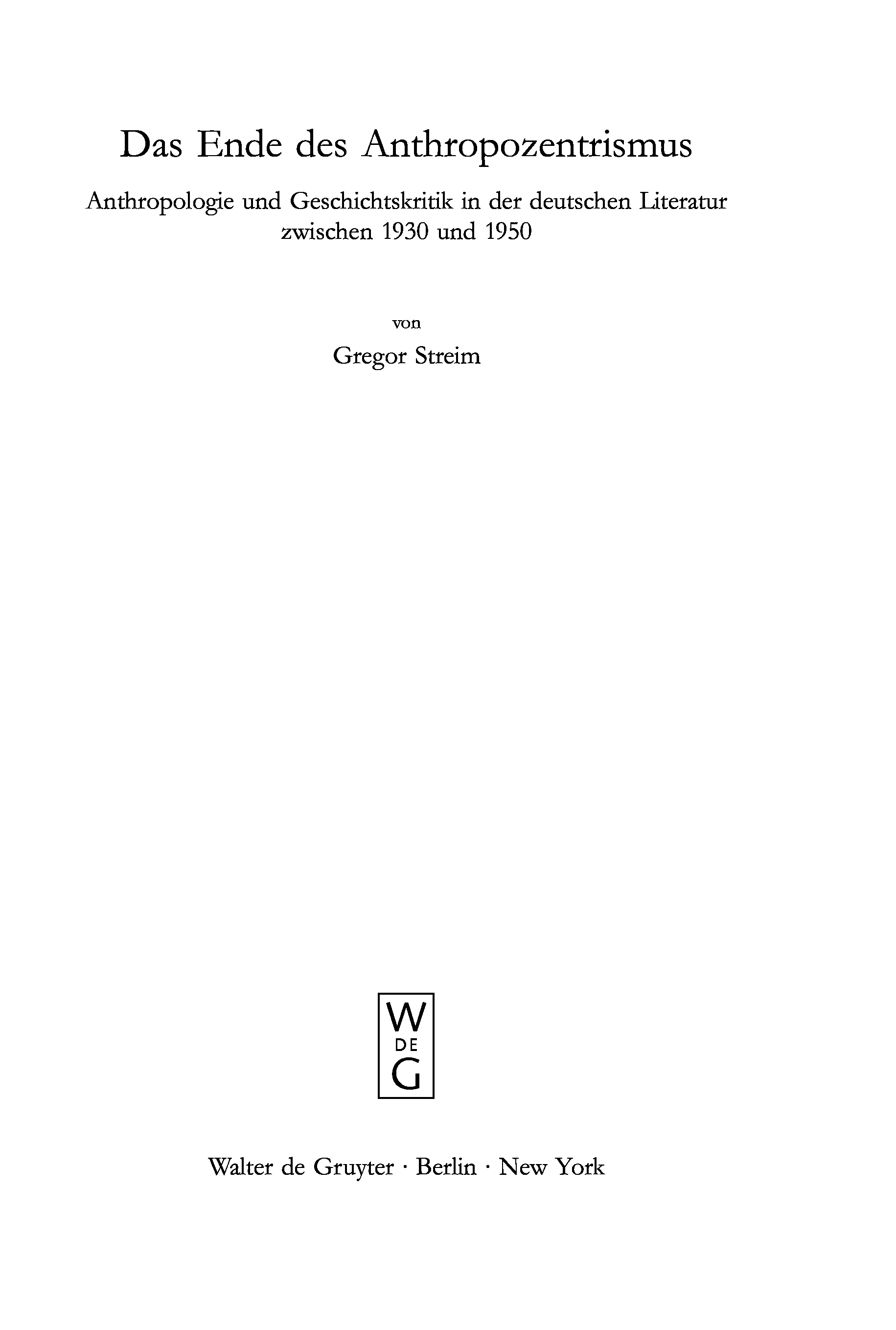 "Das Ende des Anthropozentrismus: Anthropologie und Geschichtskritik in der deutschen Literatur zwischen 1930 und 1950" - читать интересную книгу автора (Streim, Gregor)
