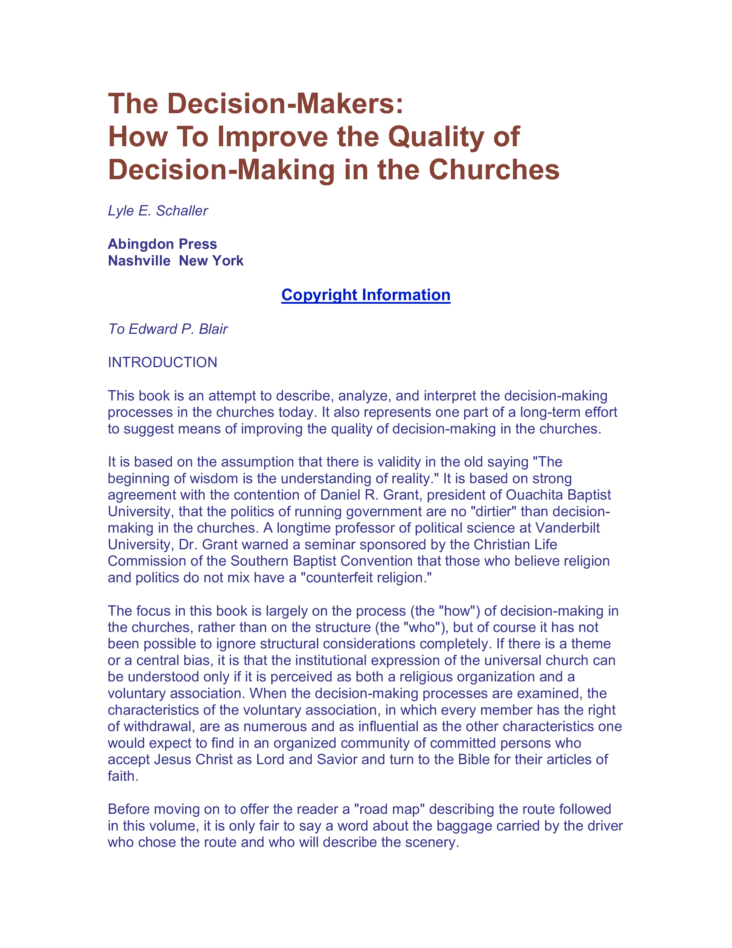 "The decision-makers;: How to improve the quality of decision-making in the churches" - читать интересную книгу автора