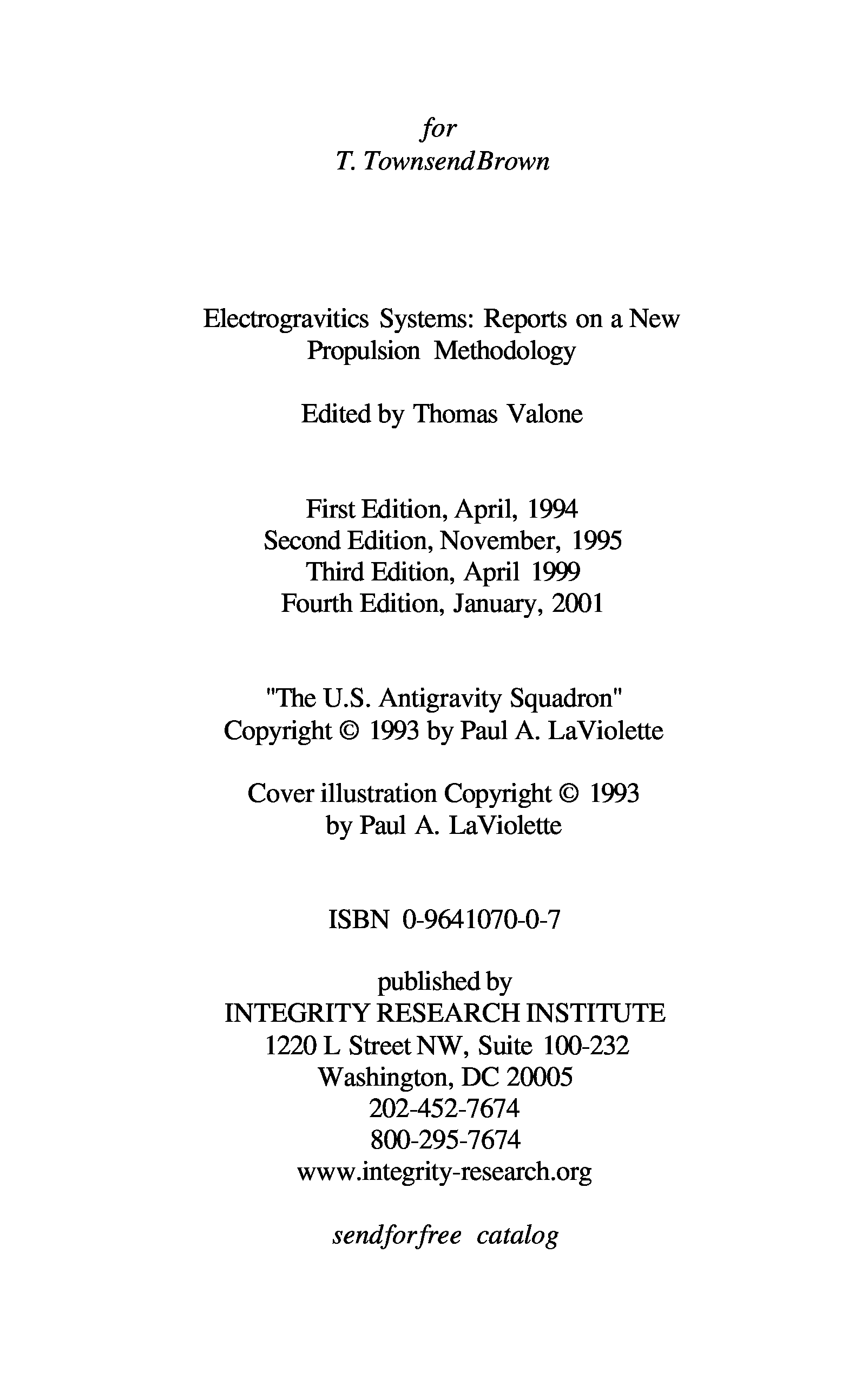 "Electrogravitics Systems: Reports on a New Propulsion Methodology" - читать интересную книгу автора