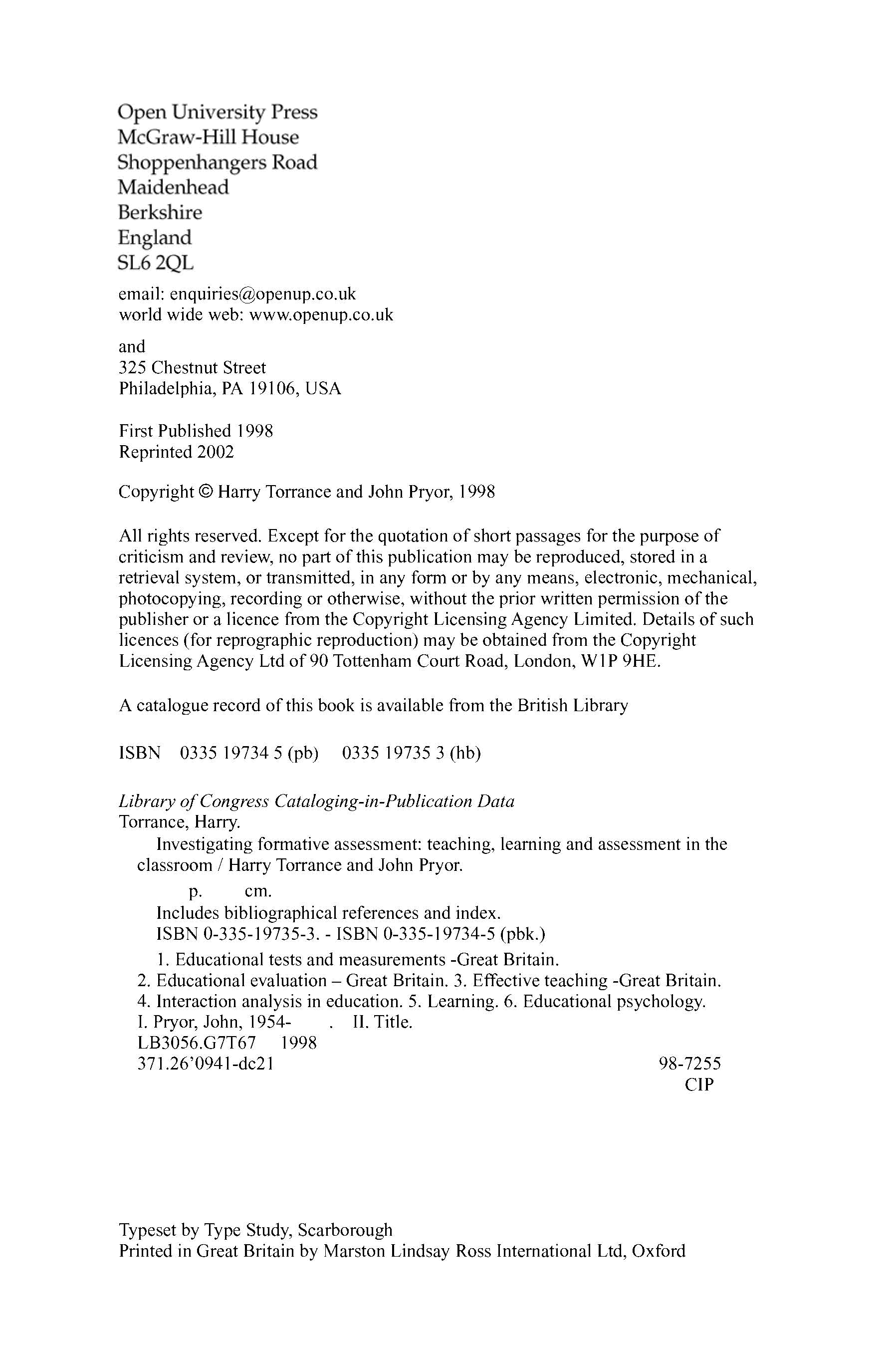 "Investigating formative assessment : teaching, learning and assessment in the classroom" - читать интересную книгу автора