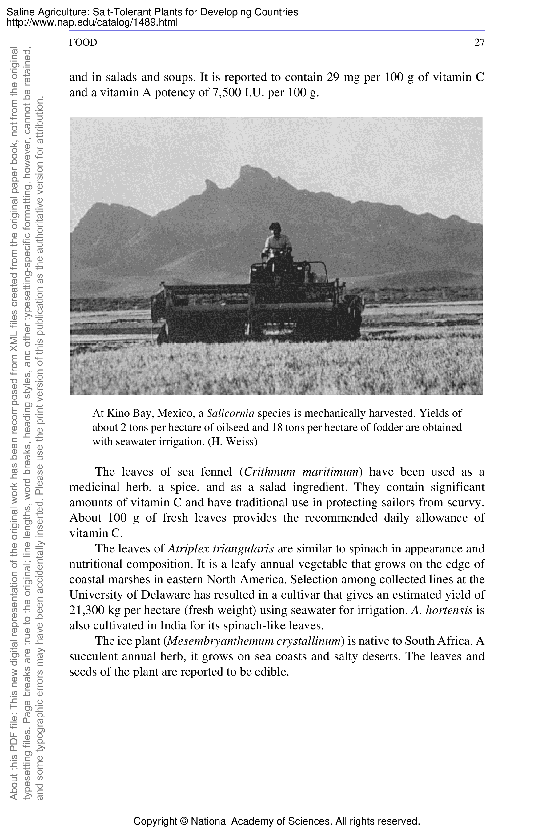 "Saline Agriculture: Salt-Tolerant Plants for Developing Countries" - читать интересную книгу автора