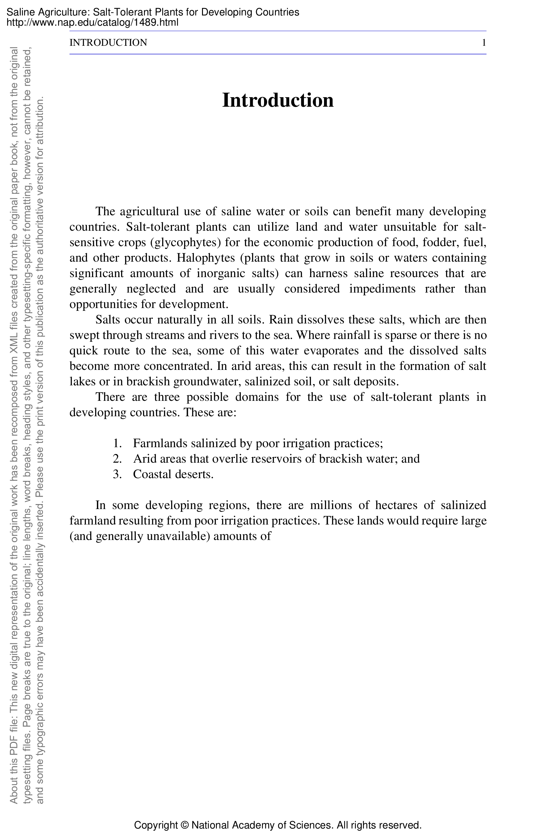 "Saline Agriculture: Salt-Tolerant Plants for Developing Countries" - читать интересную книгу автора