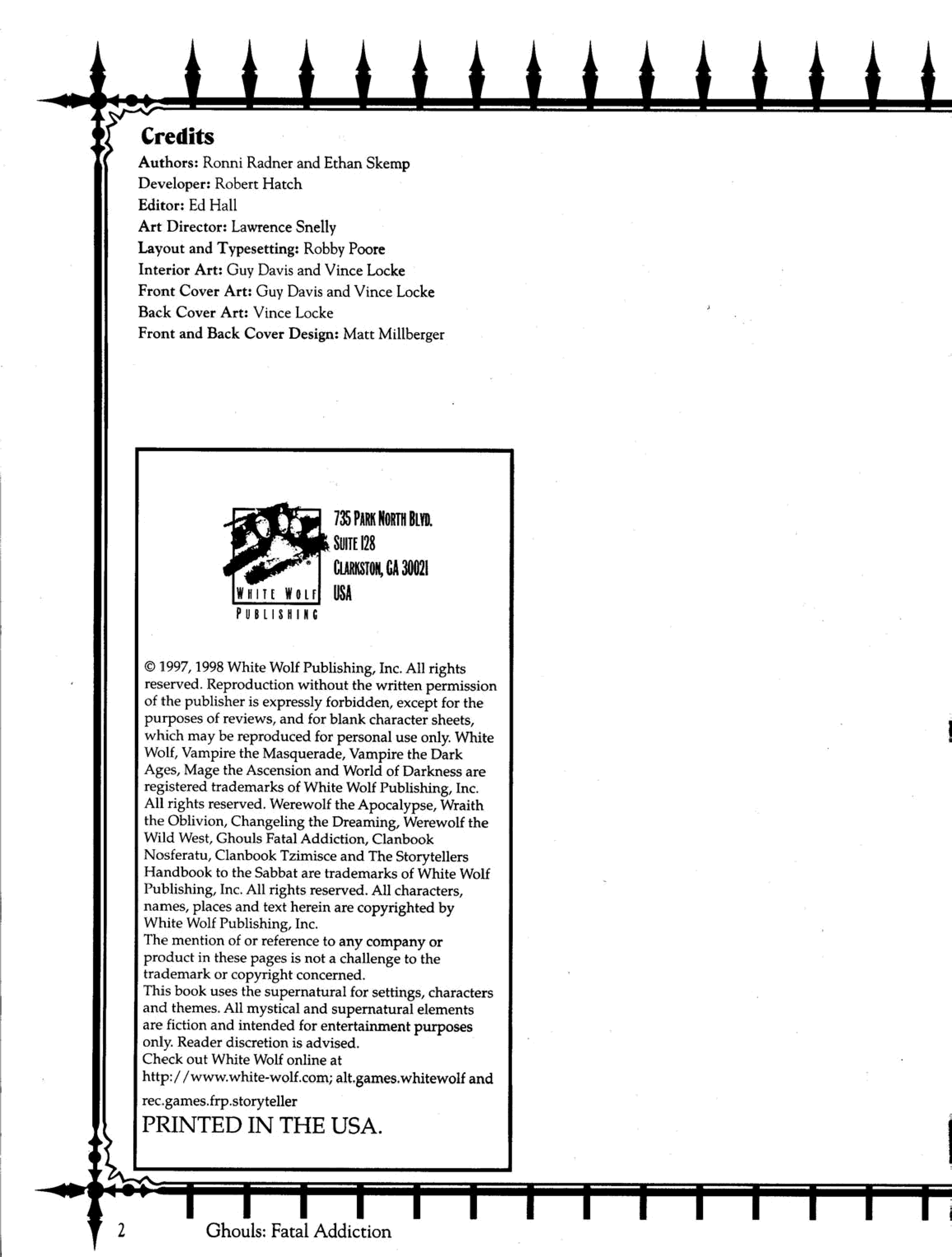 "Ghouls: Fatal Addiction (Vampire: The Masquerade)" - читать интересную книгу автора