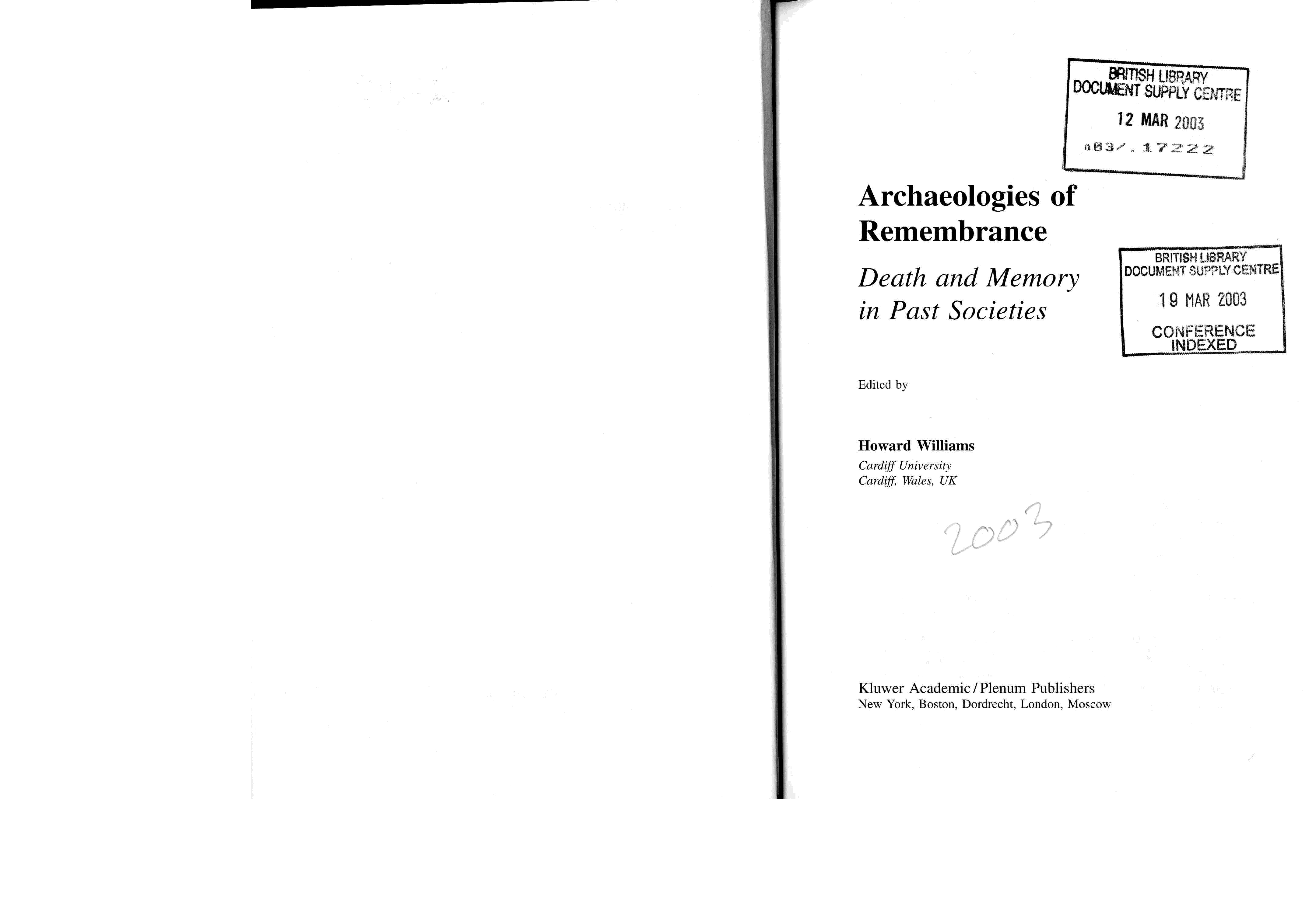 "Archaeologies of Remembrance: Death and Memory in Past Societies" - читать интересную книгу автора