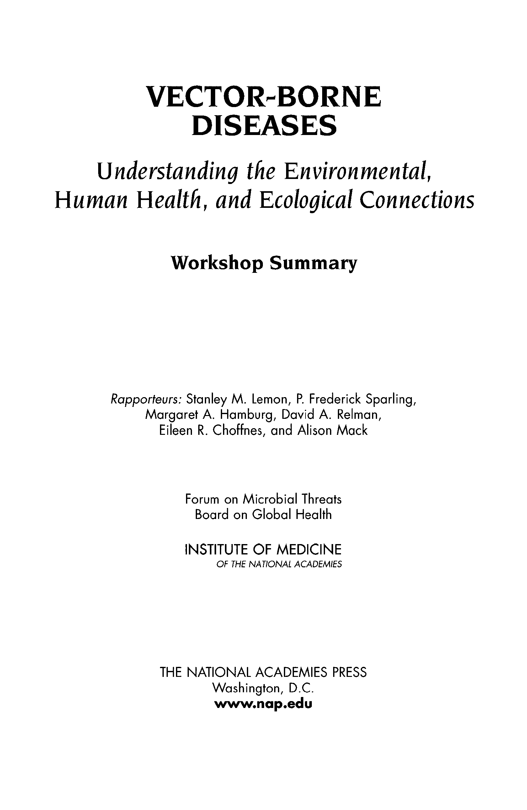 "Vector-Borne Diseases: Understanding the Environmental, Human Health, and Ecological Connections, Workshop Summary (Forum on Microbial Threats)" - читать интересную книгу автора