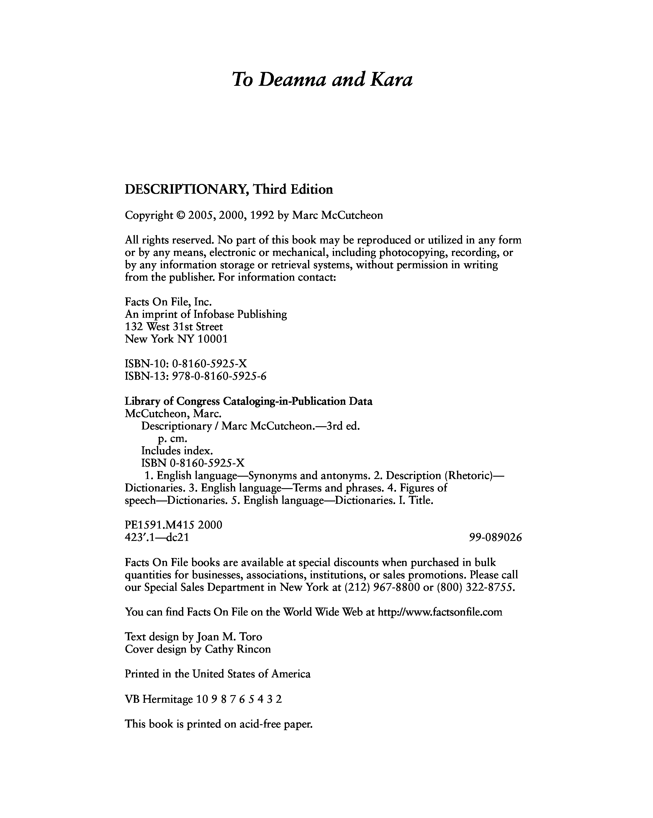 "Descriptionary: A Thematic Dictionary, 3rd Edition (Facts on File Library of Language and Literature)" - читать интересную книгу автора