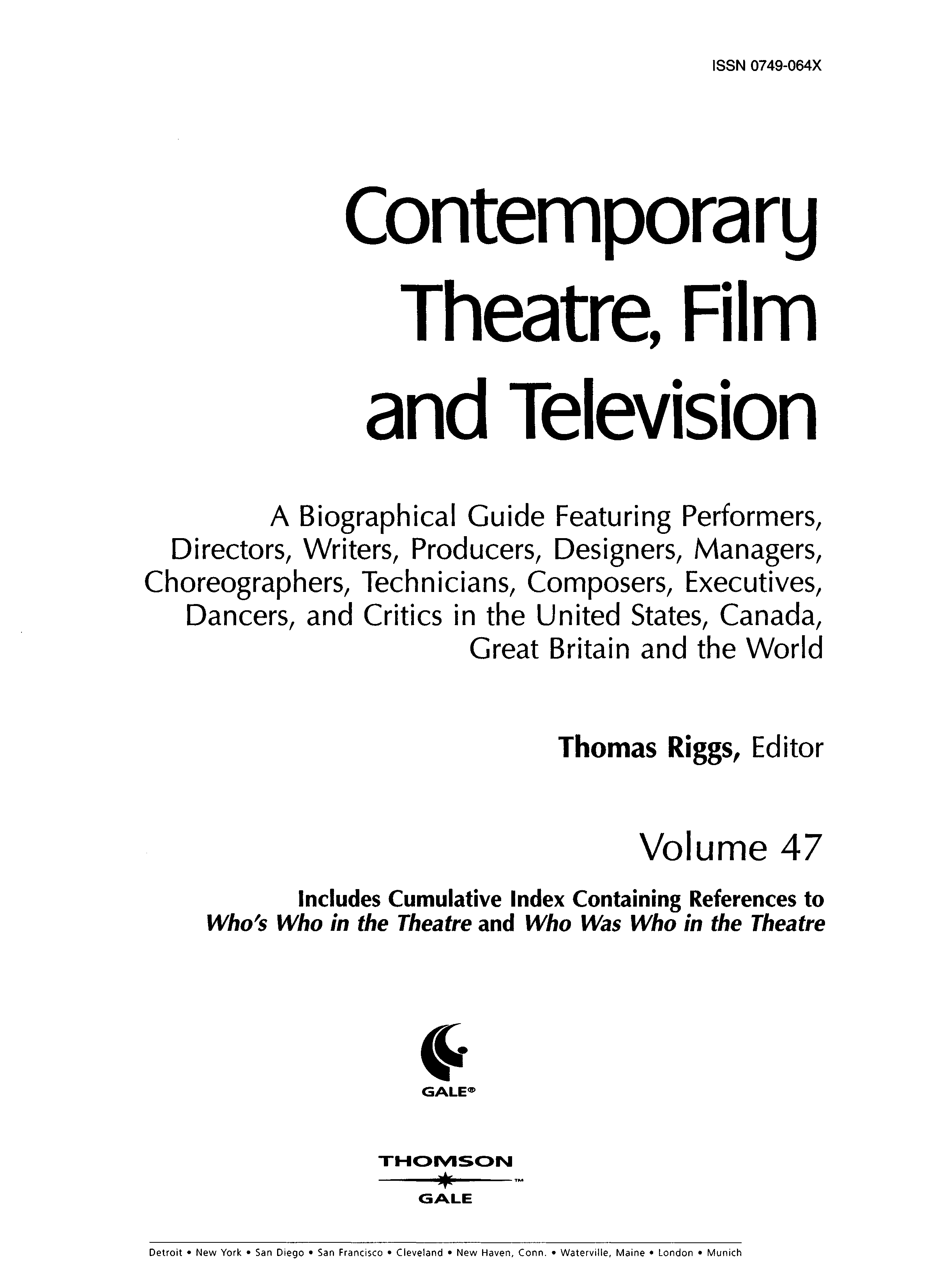 "Contemporary Theatre, Film and Television: A Biographical Guide Featuring Performers, Directorys, Writers, Producers, Designers, Managers, Choreographers, Technicians, Composers, Executives, Volume 47" - читать интересную книгу автора